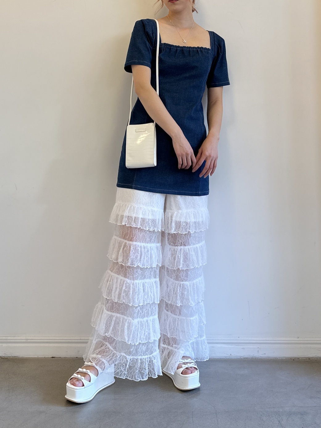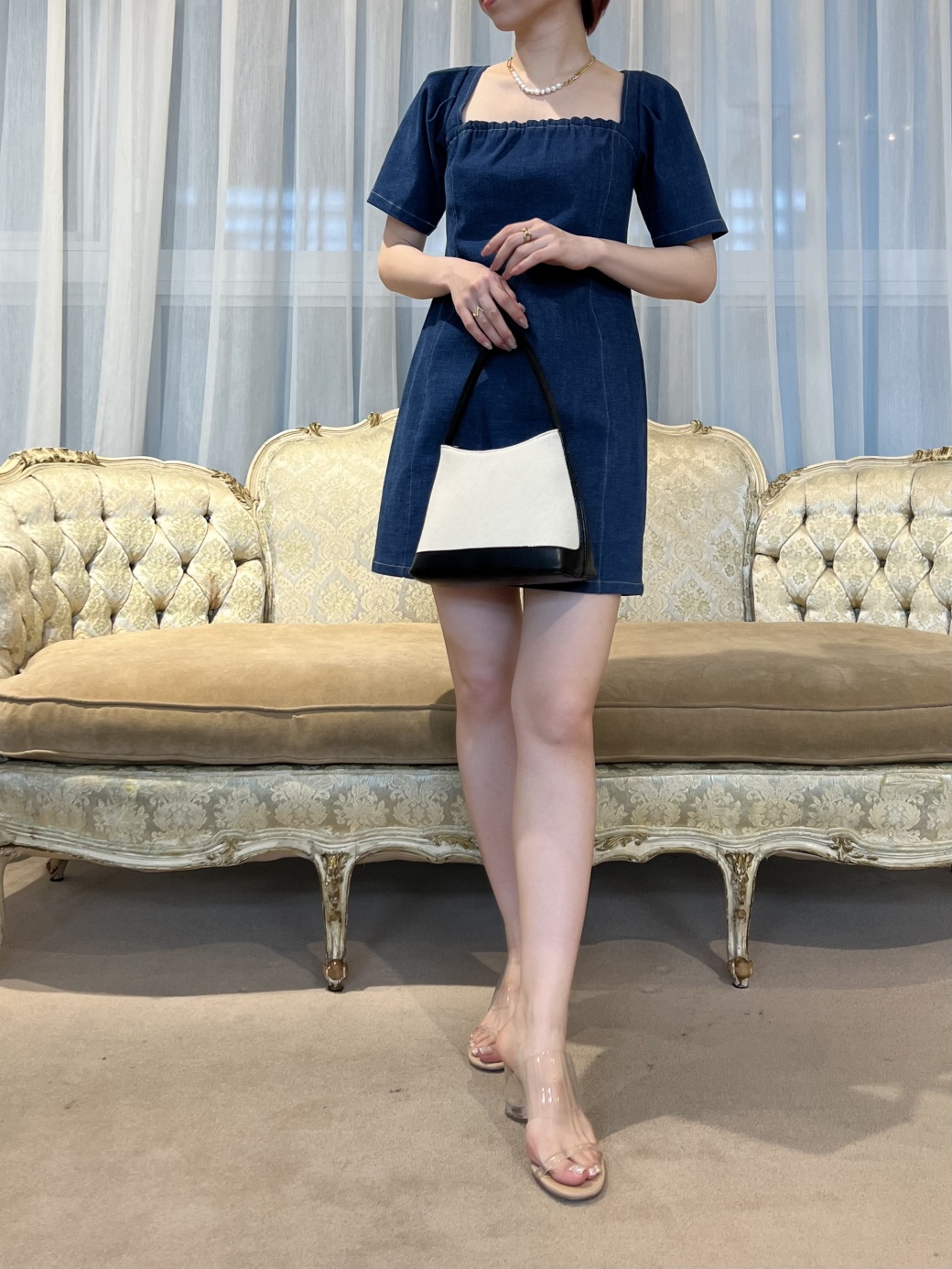 ミニ丈デニムワンピース。