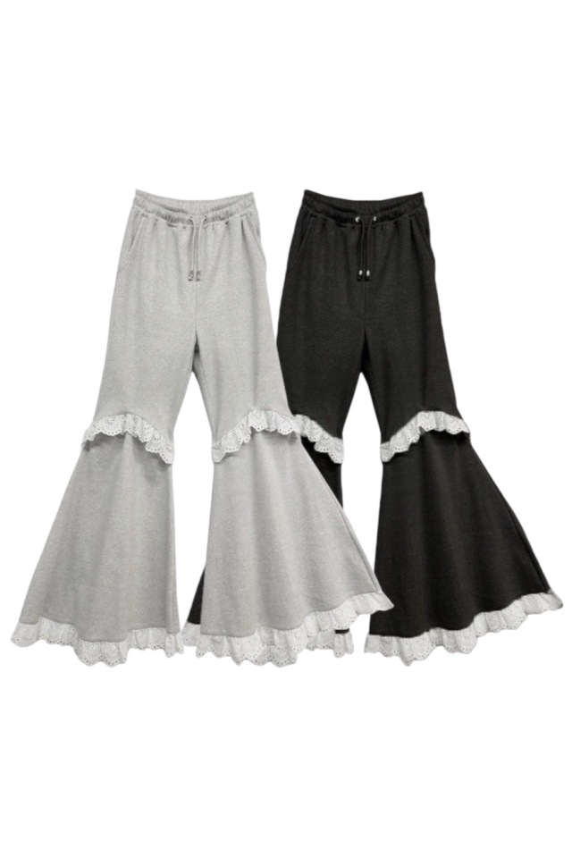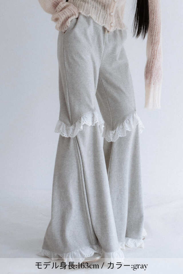 フリル×リブ素材で足長効果のある2WAYフレアパンツ