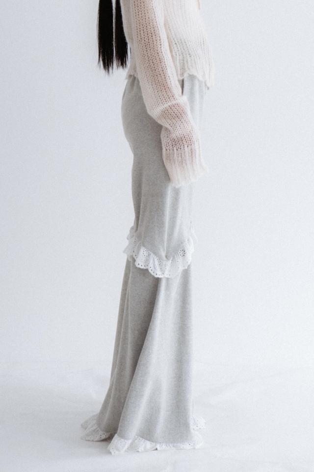 ・柔らかなリブ素材を使用したフレアパンツ