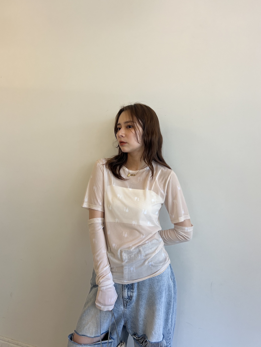 ストレッチ性に優れた滑らかな肌触りのシアーチュールトップス。