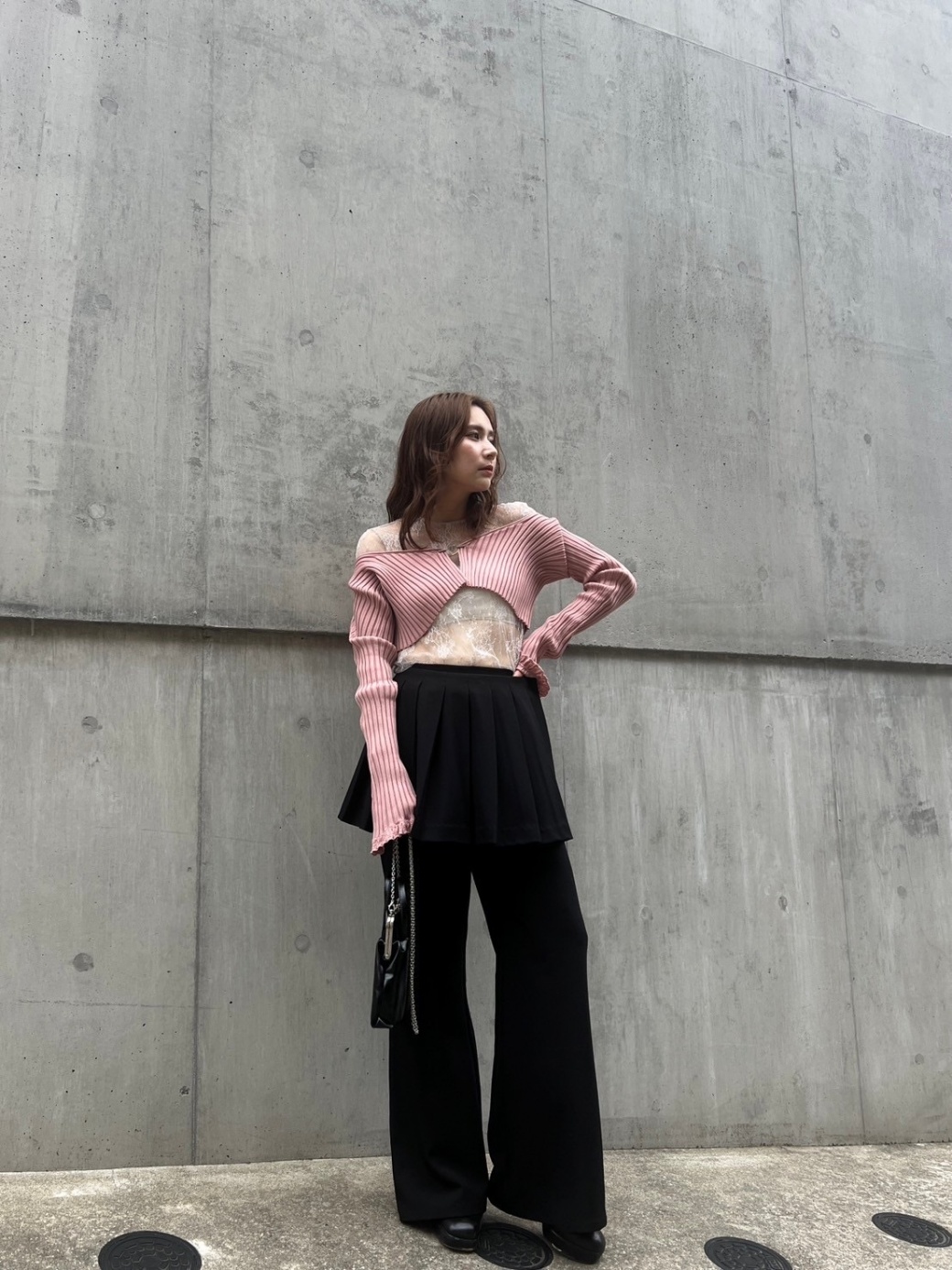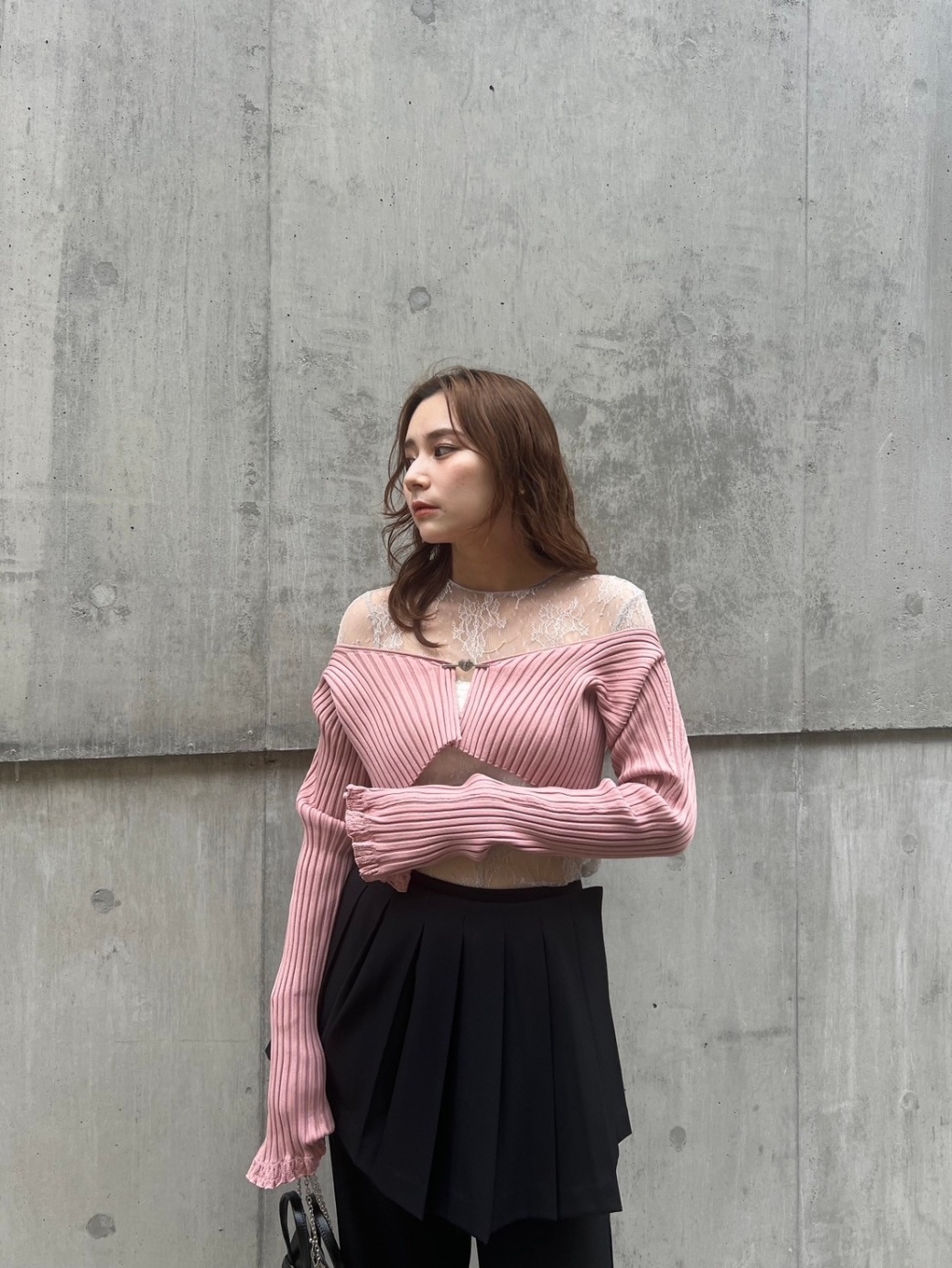 袖口はレース風の編み地で女性らしさも。