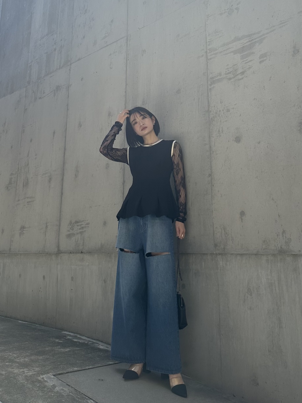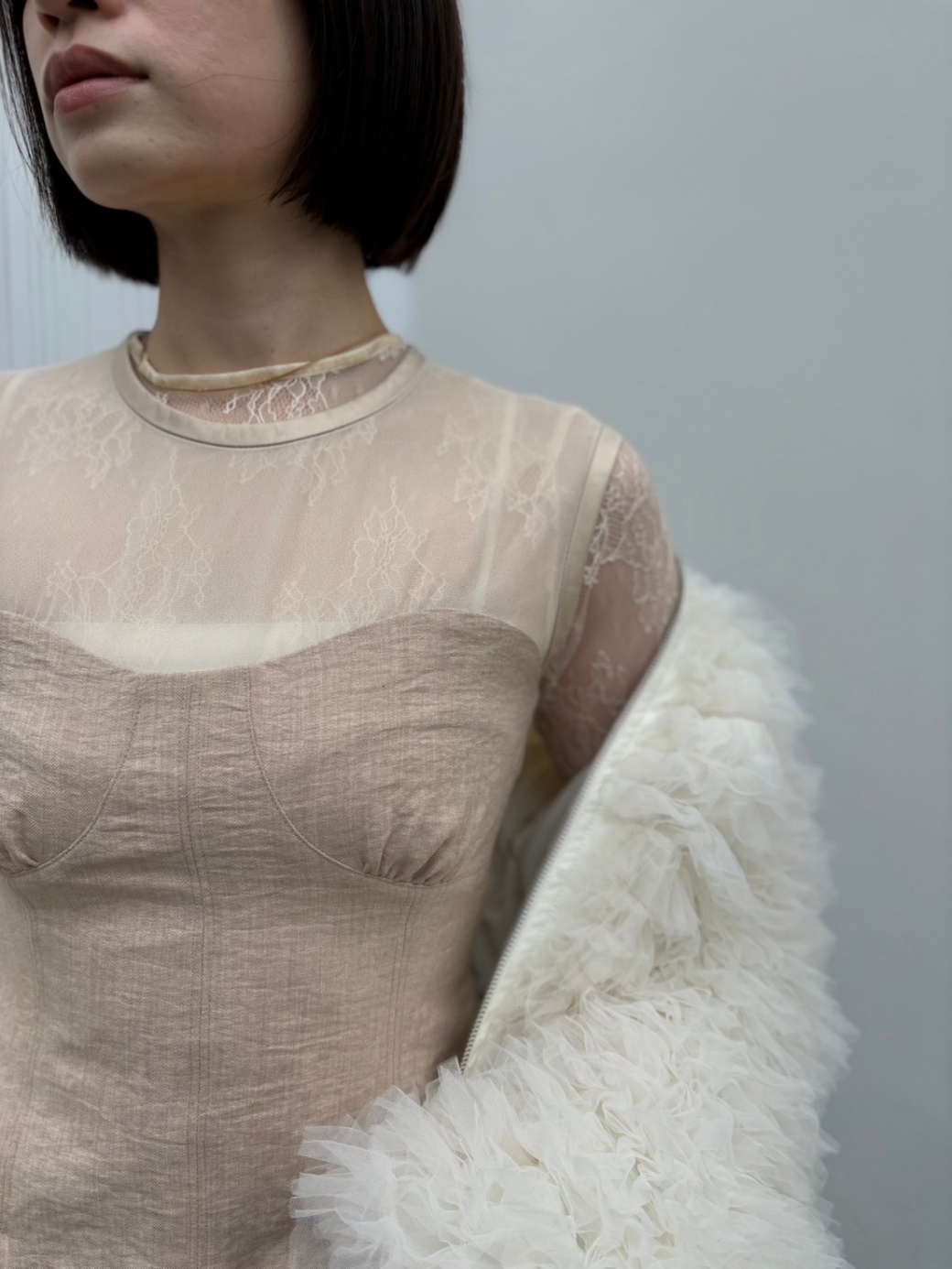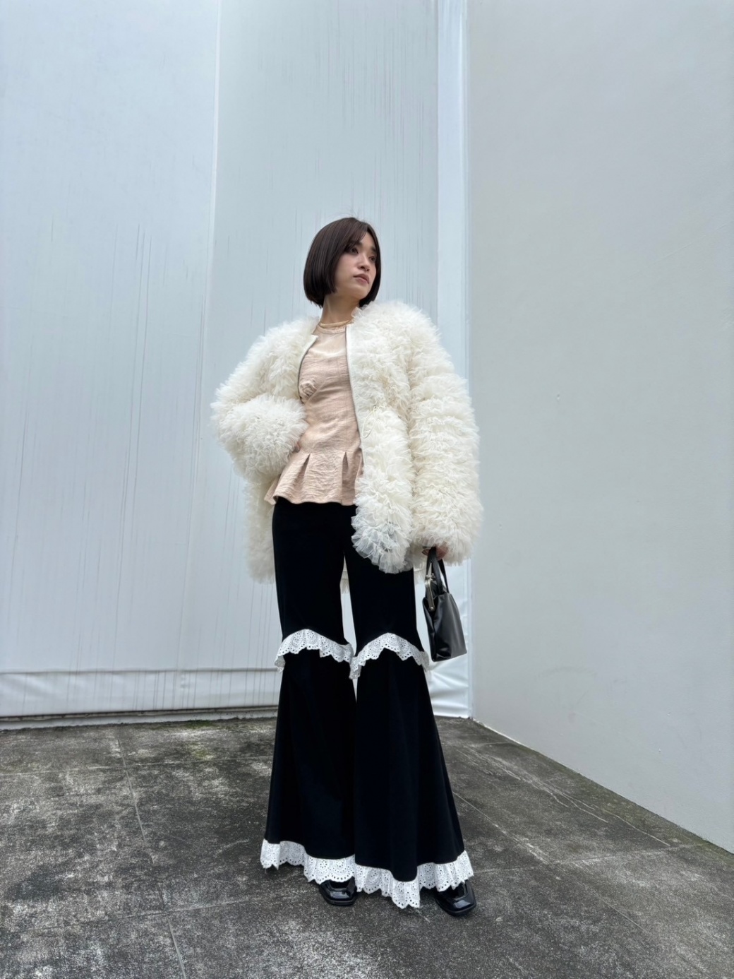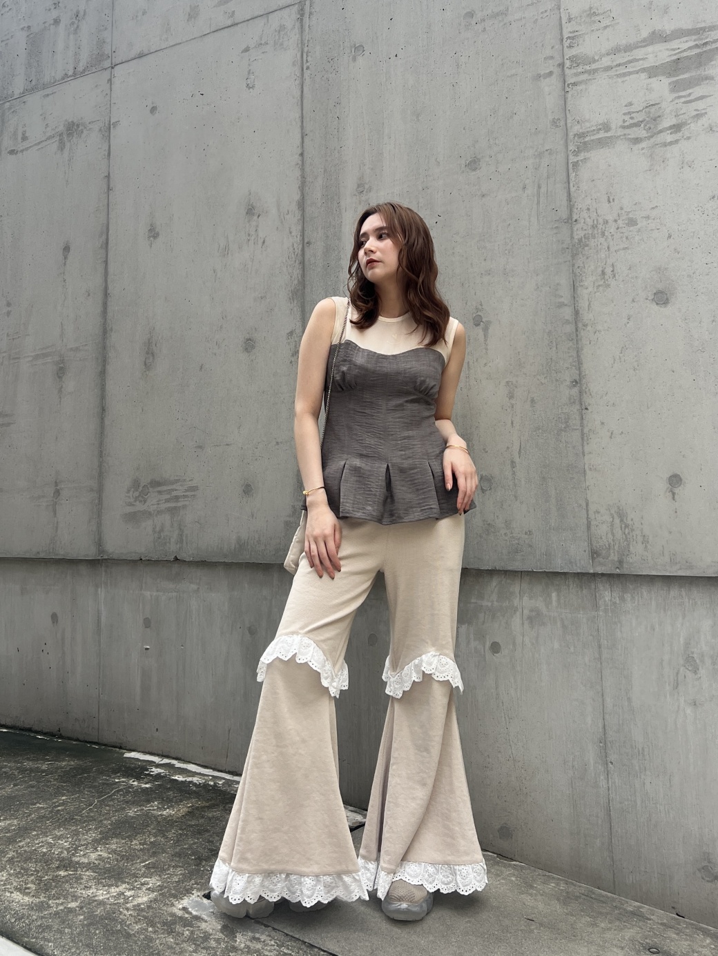 ウエストをわずかにシェイプさせ、裾をフレアにすることで気になる下半身もカバー。