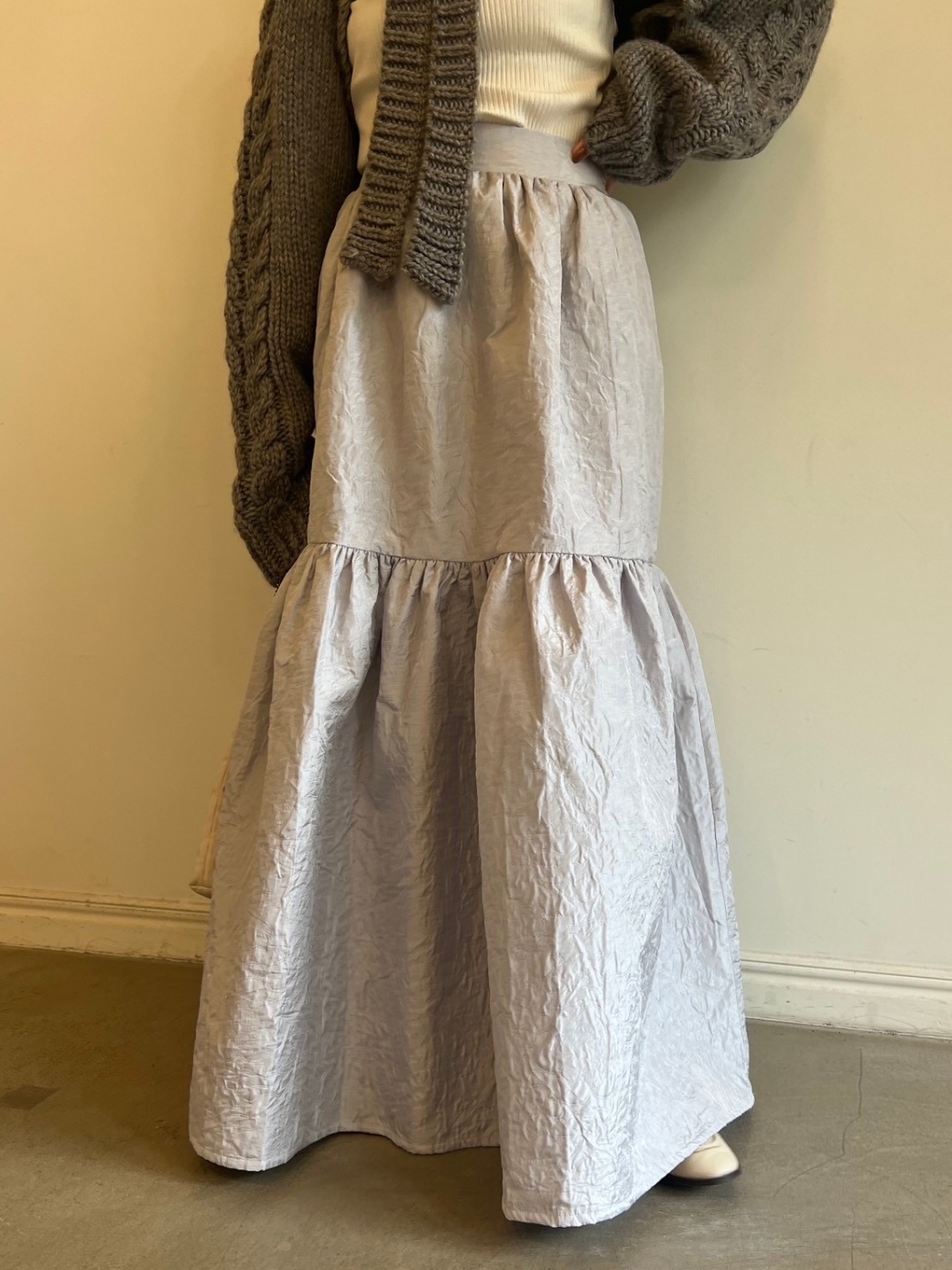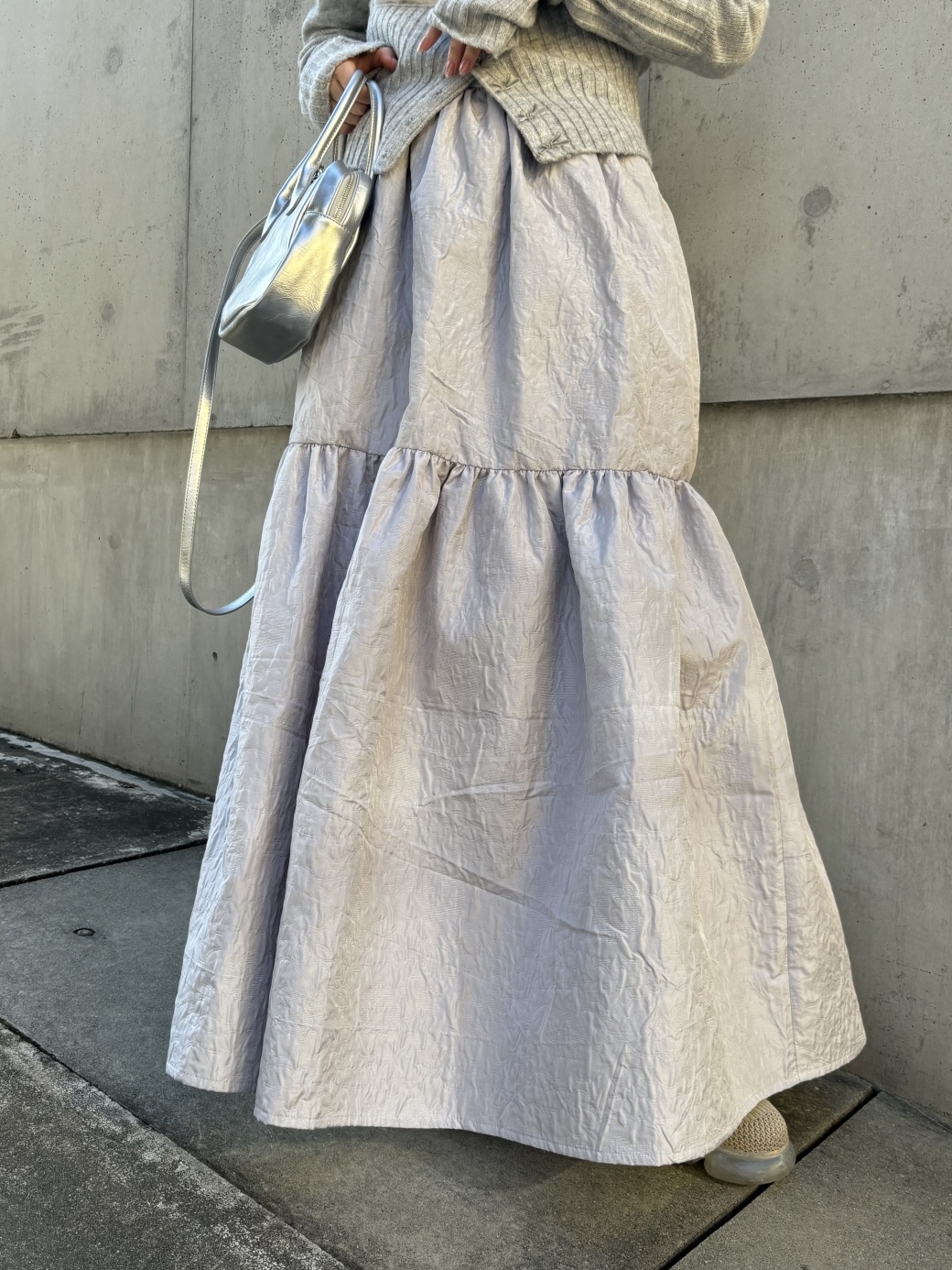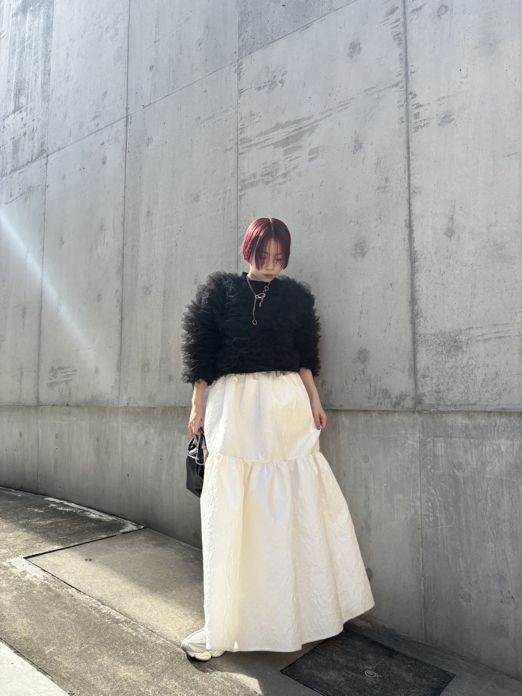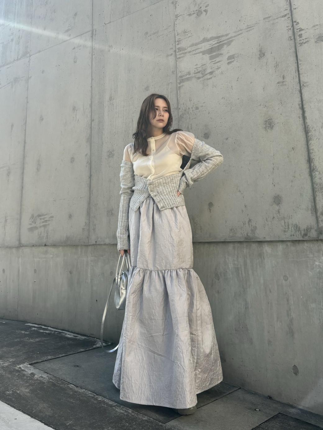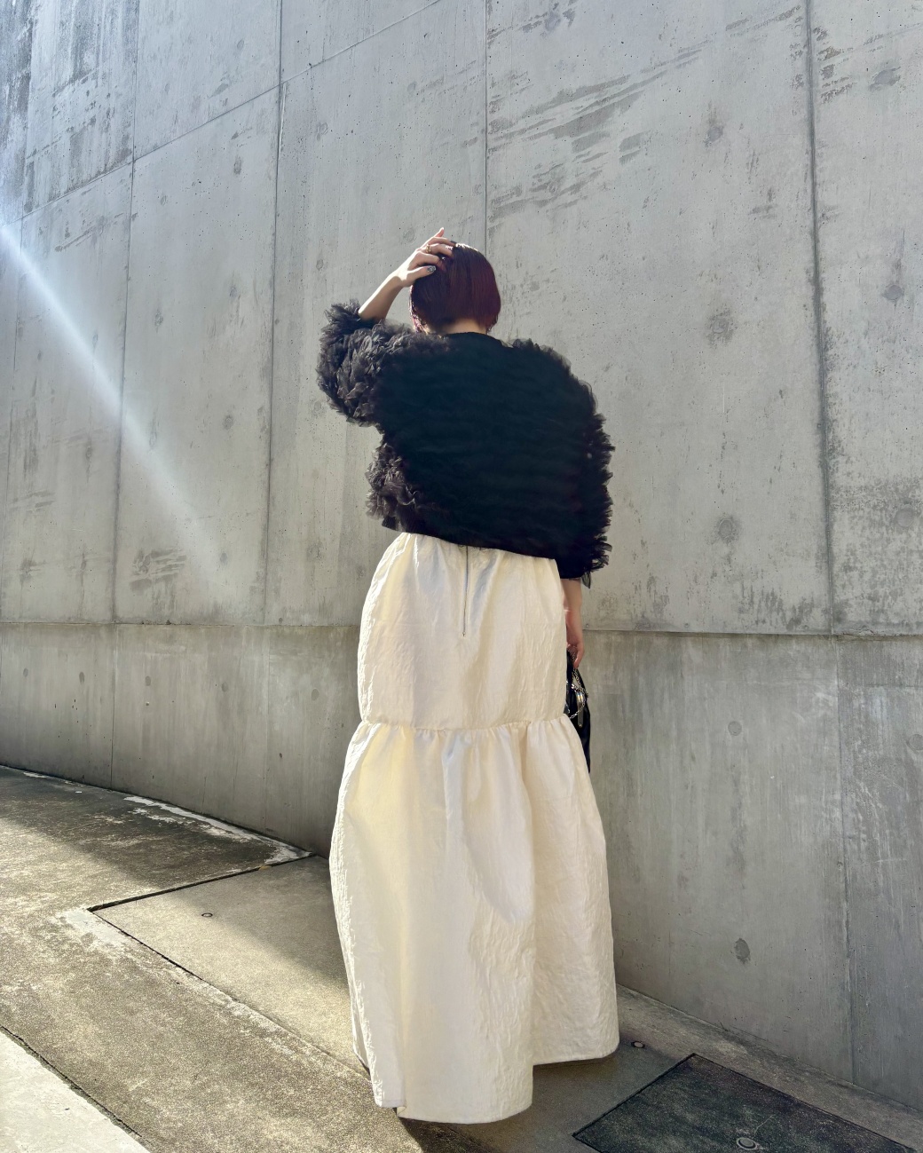 スカート部分にはギャザーが入っておりフェミニンで繊細な雰囲気を醸し出します。