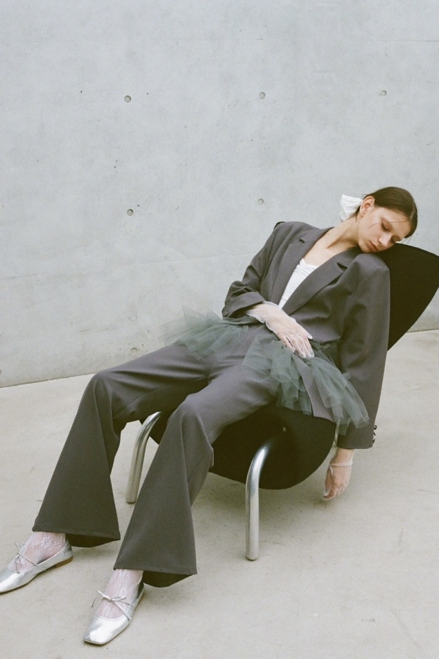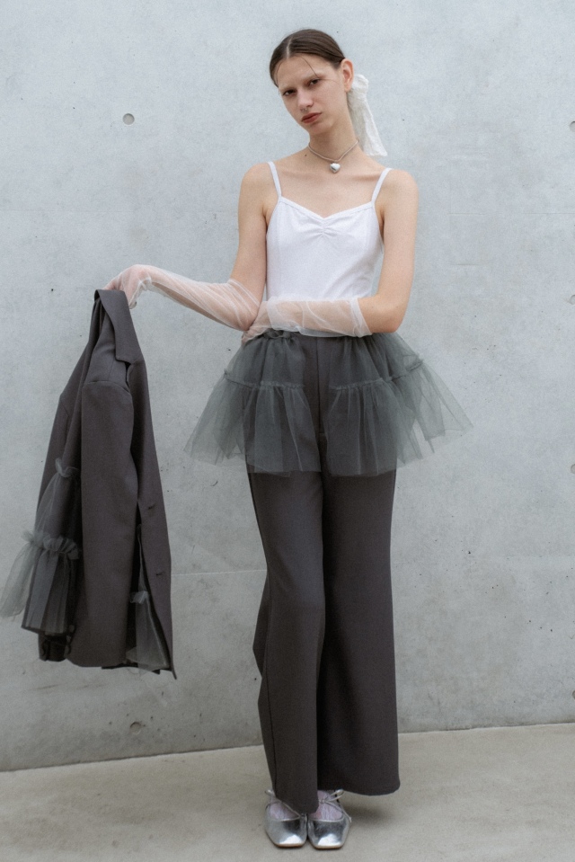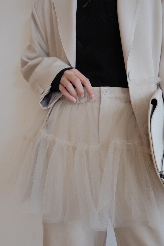 tulle peplum jacket(24A-DR-20)とセットアップでのコーディネートもおすすめです。