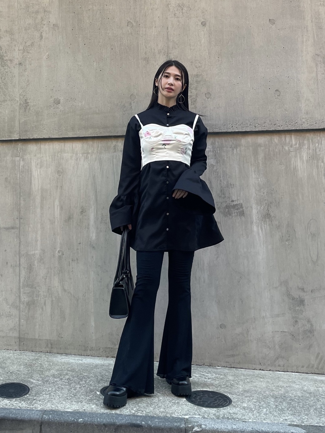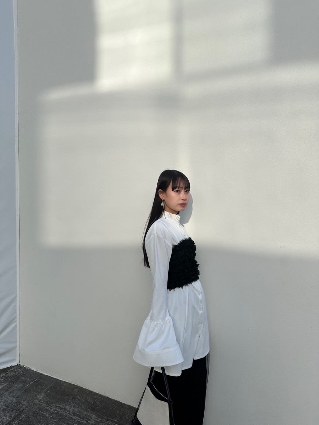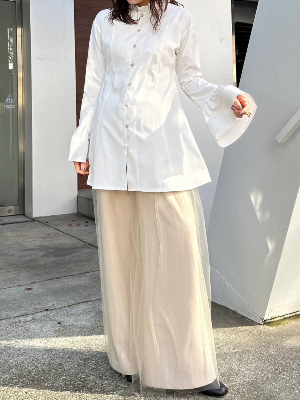 トップスとしてもミニワンピースとしても幅広くコーディネートが可能な1枚。