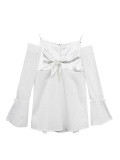 胸元のリボンが特徴的なオフショルダーブラウス。