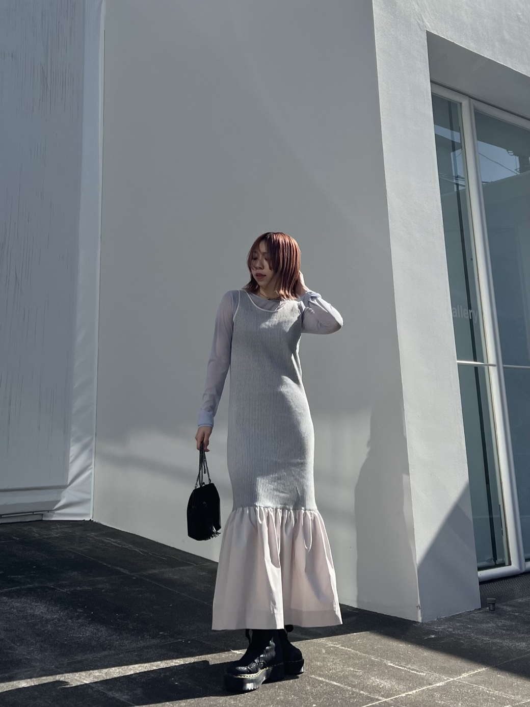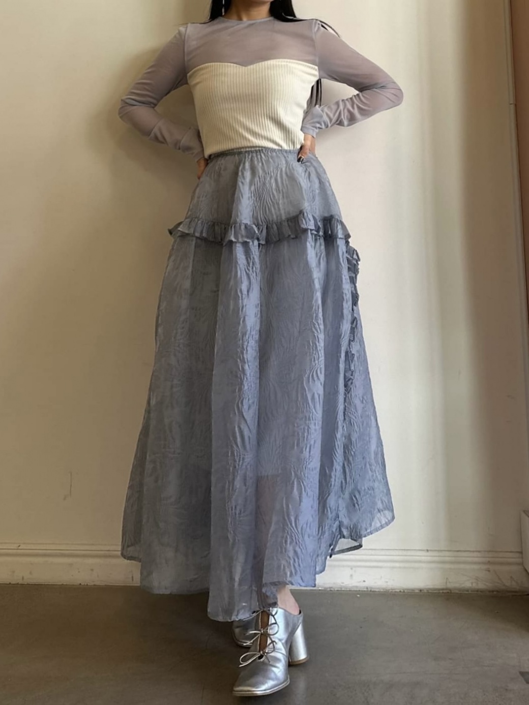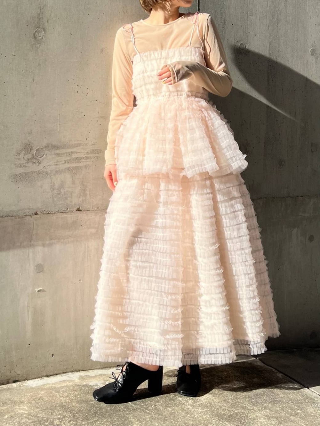 ビスチェ部分は、しっかりめなリブ素材を使用。