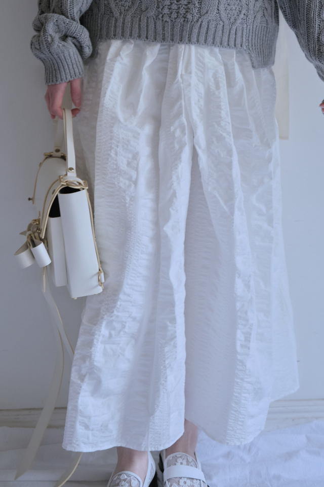 ・足元まで広がるシルエットだけど、重たく見えず軽やかな印象