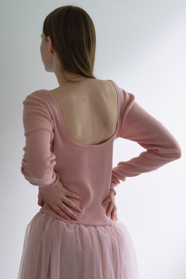 ・大胆な背中空きで大人の抜け感