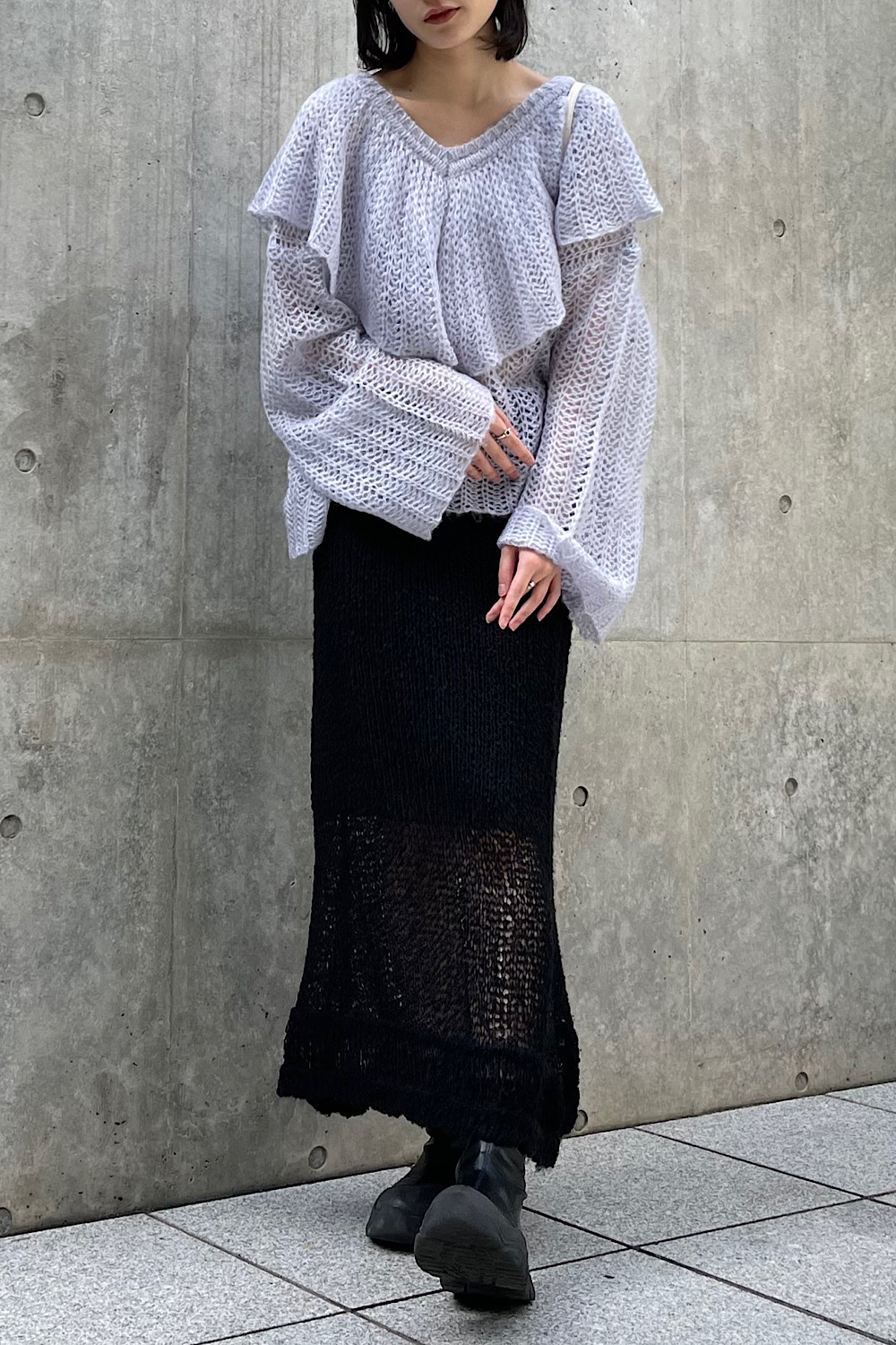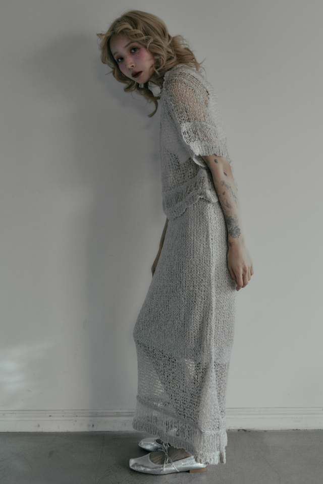・裾の繊細な編み変化が、歩くたびにさりげなく揺れてフェミニンさをプラス