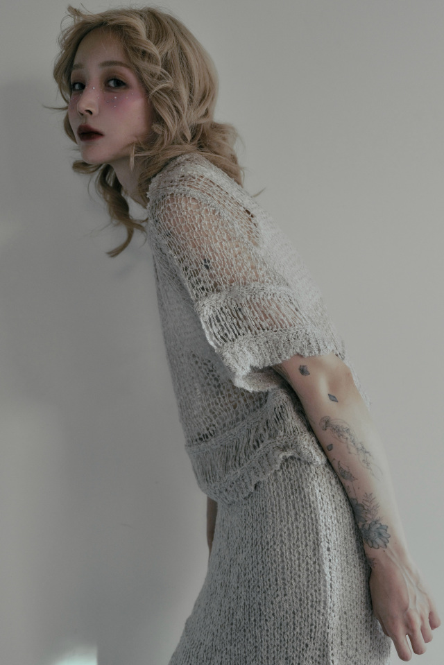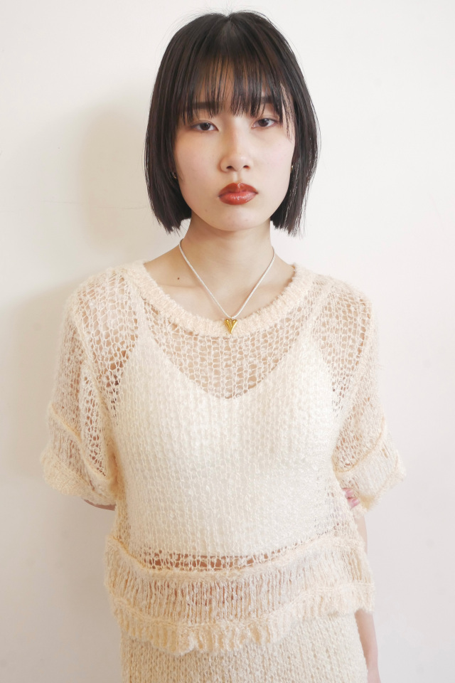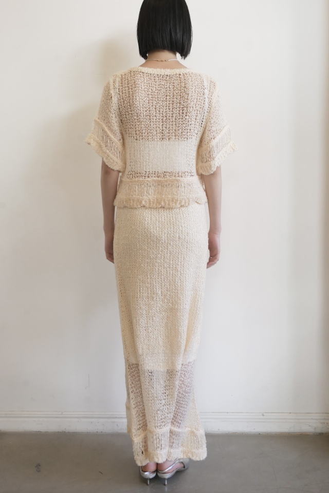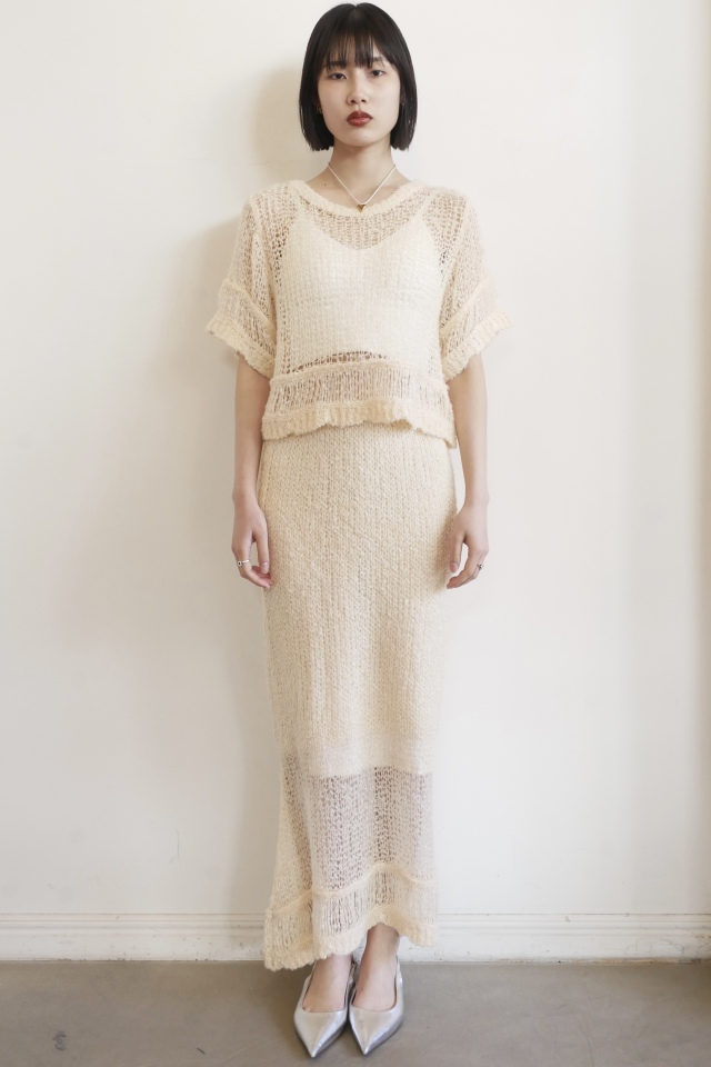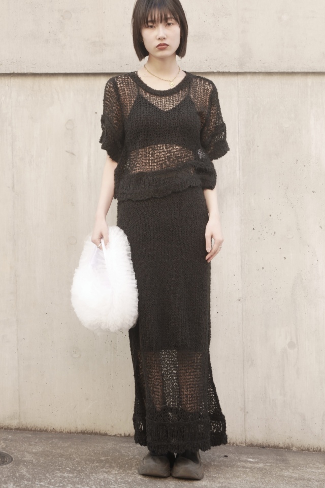 ・同素材のpoodle crochet knit skirt(25A1-DR-SK03)とセットアップで着れば、ムードのあるリラックススタイルに