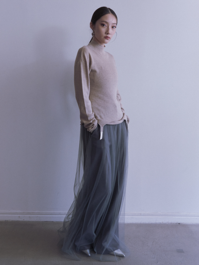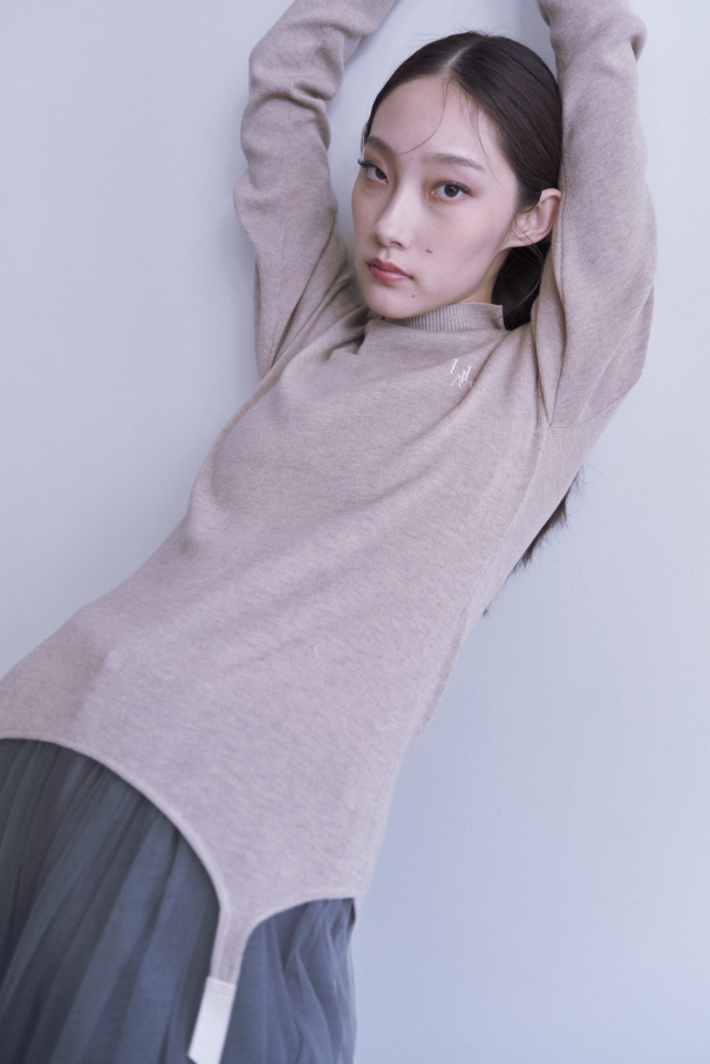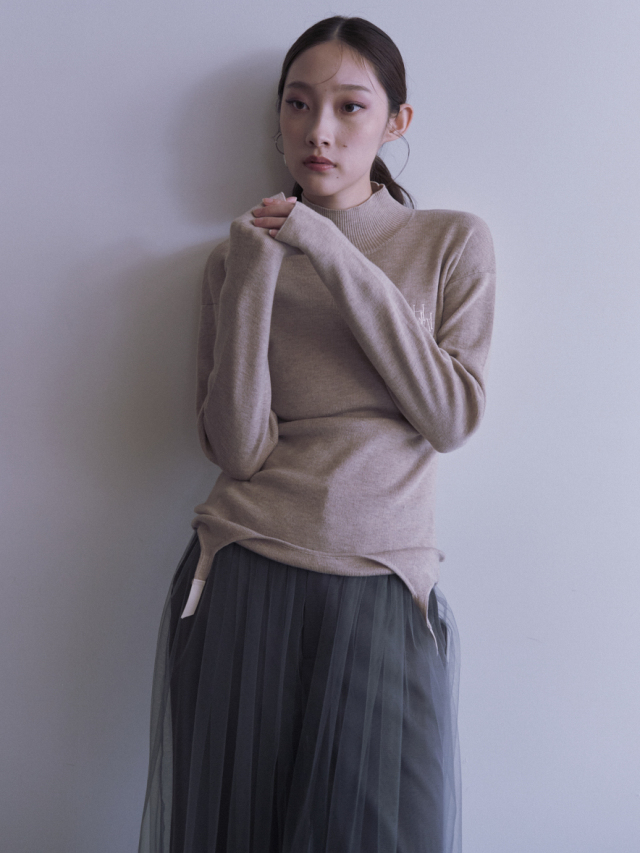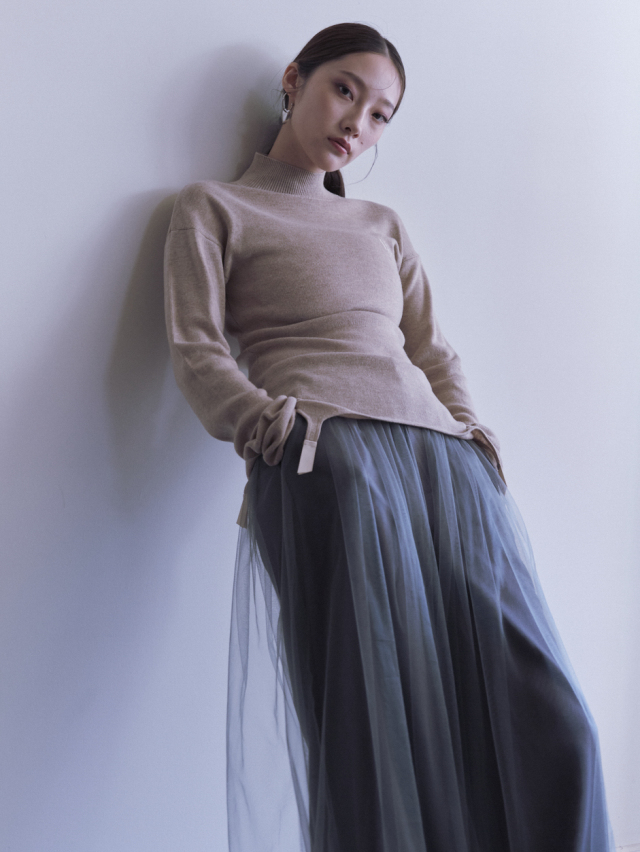 フィット感が可愛いハイネックニット。