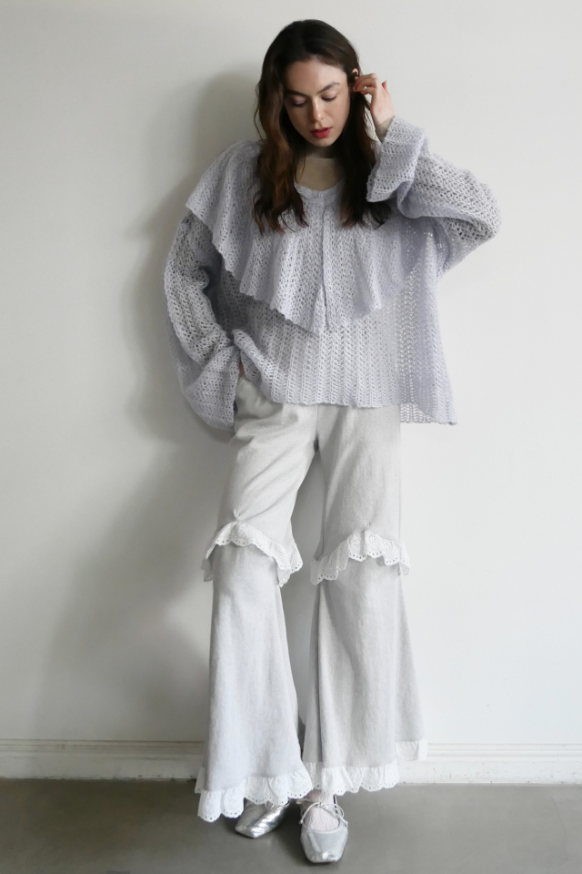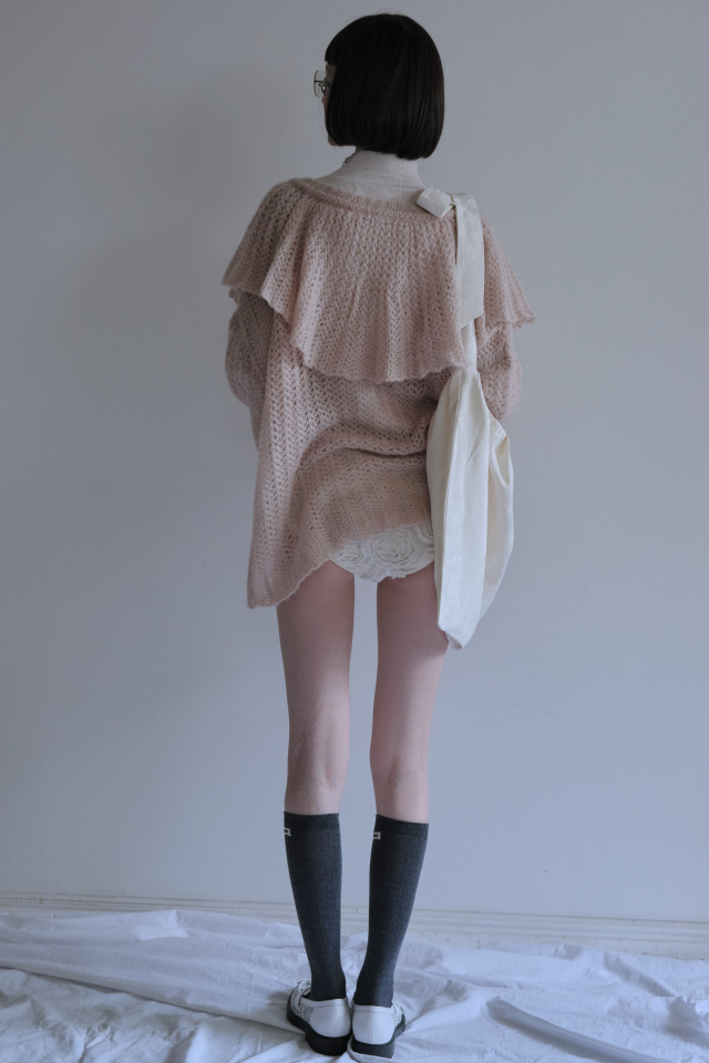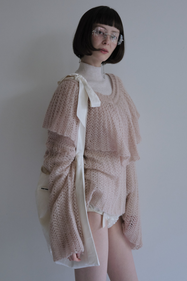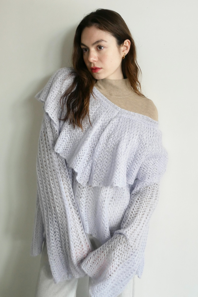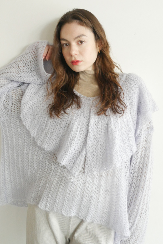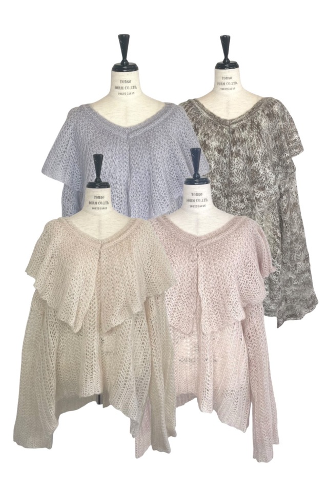 ・ざっくりと編まれたエアリーな透かし編みニット