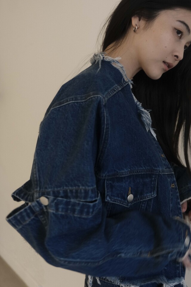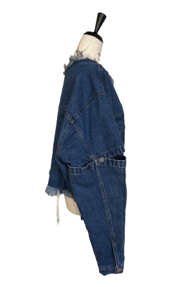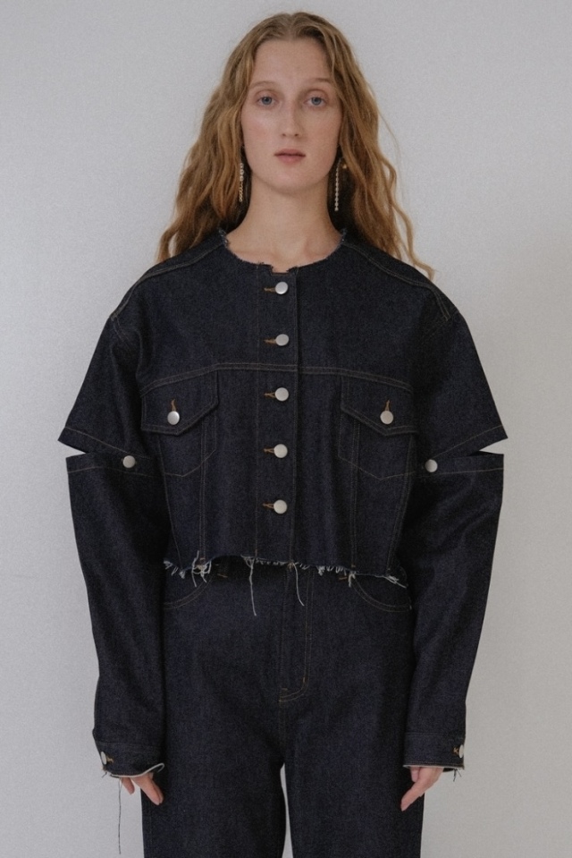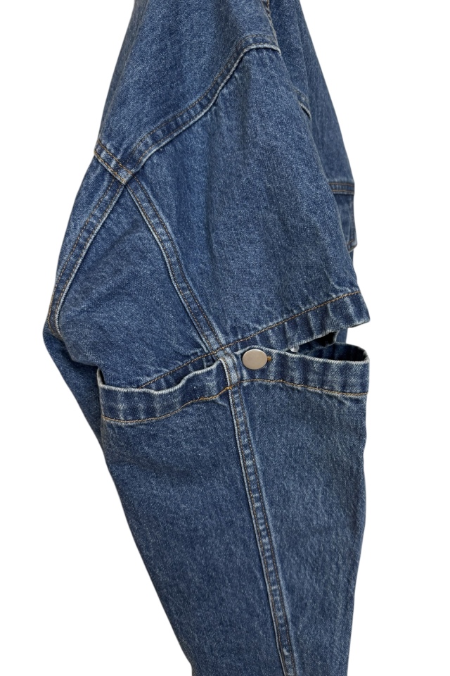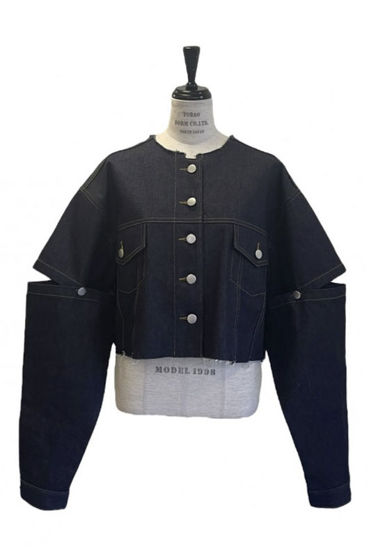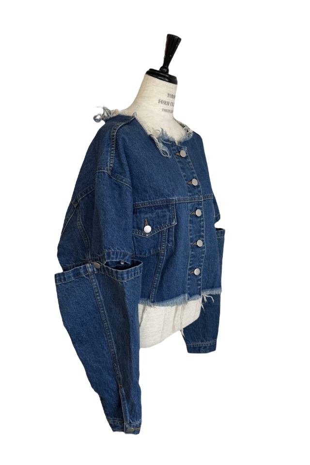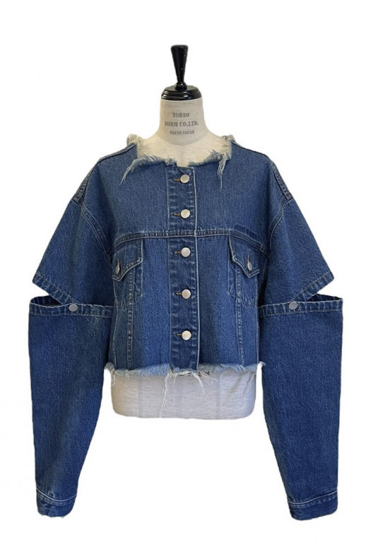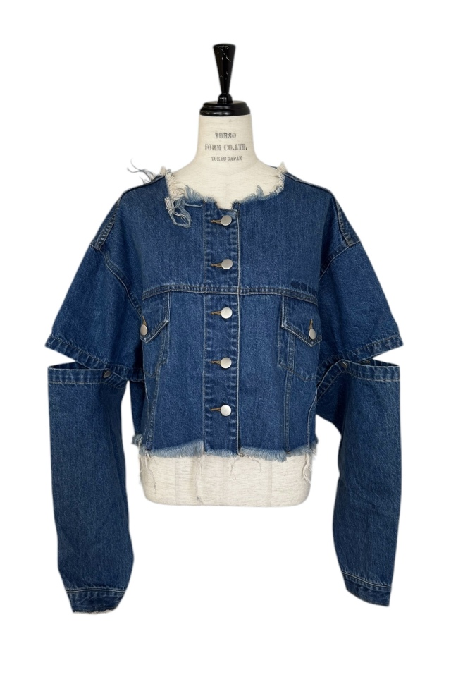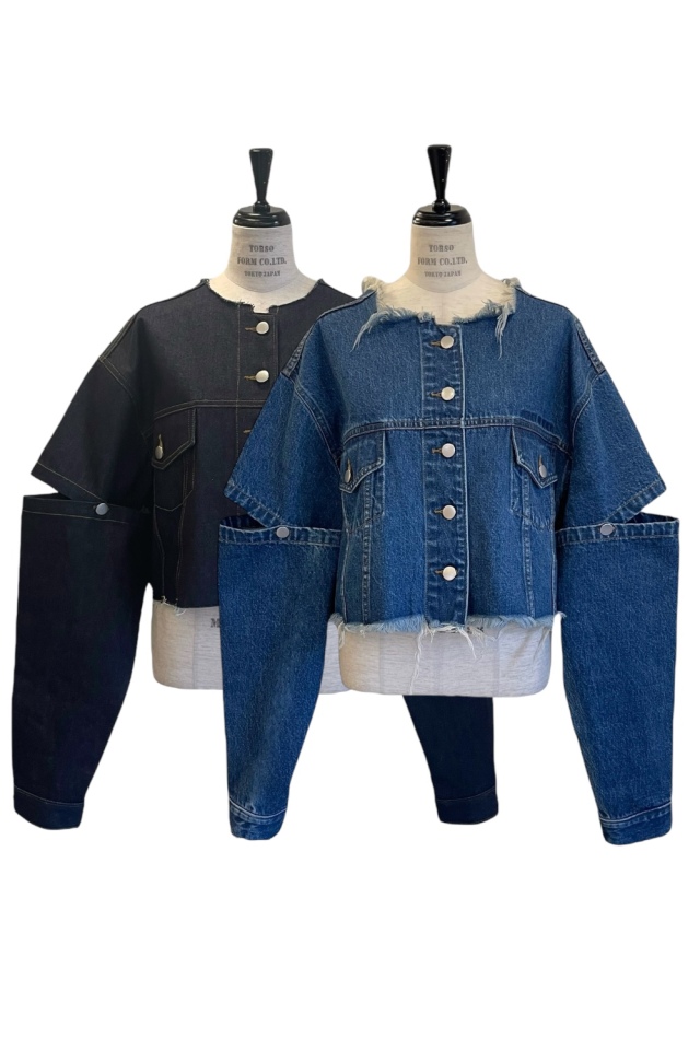 外側のボタンを外してスリットにしたり、取り外して半袖にしても使える3wayデニムジャケット