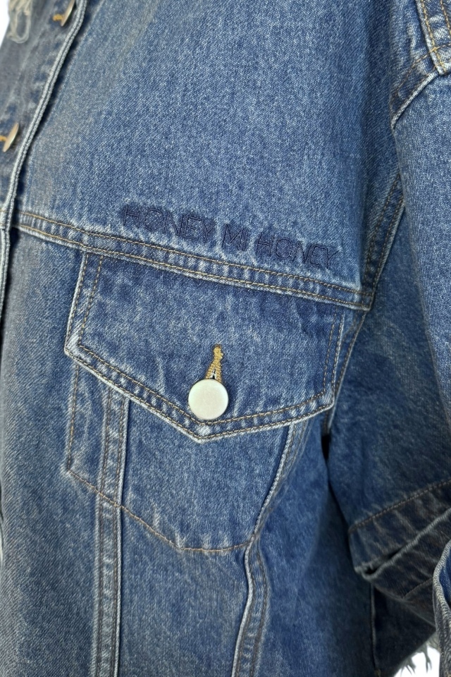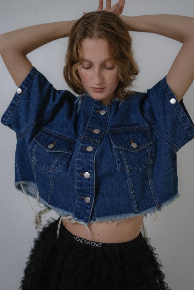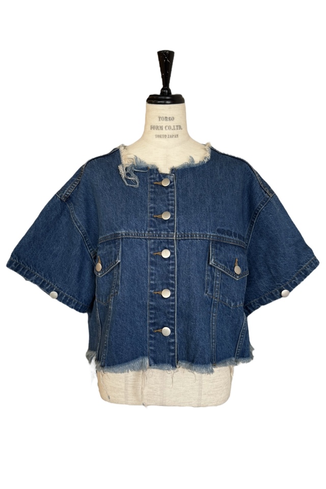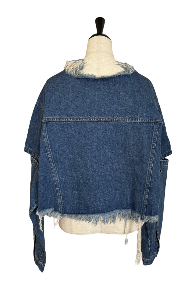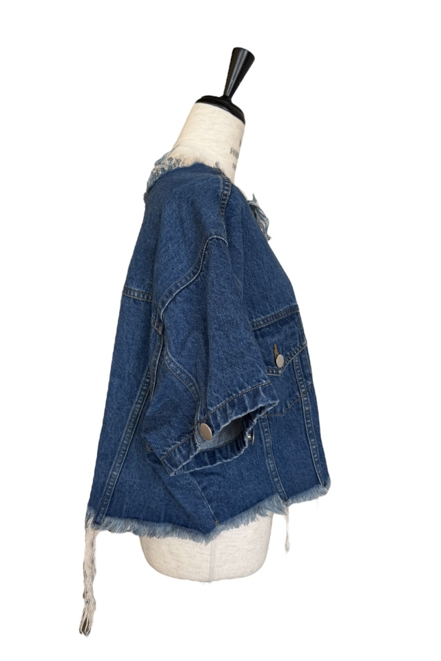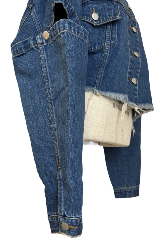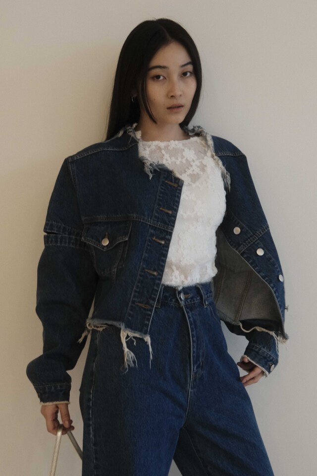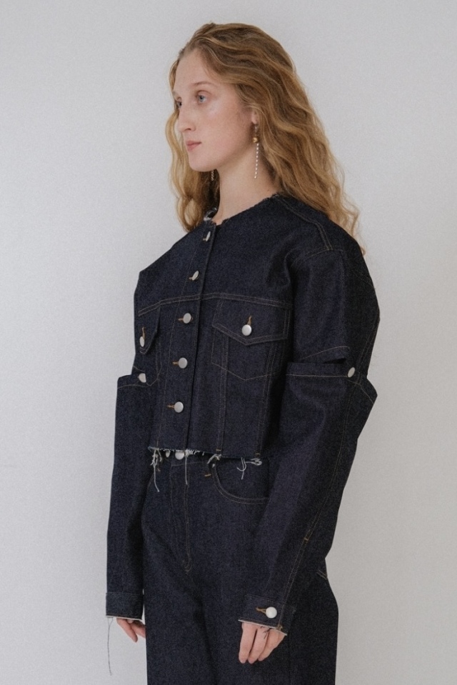 外側のボタンを外してスリットにしたり、取り外して半袖にしても使える3wayデニムジャケット