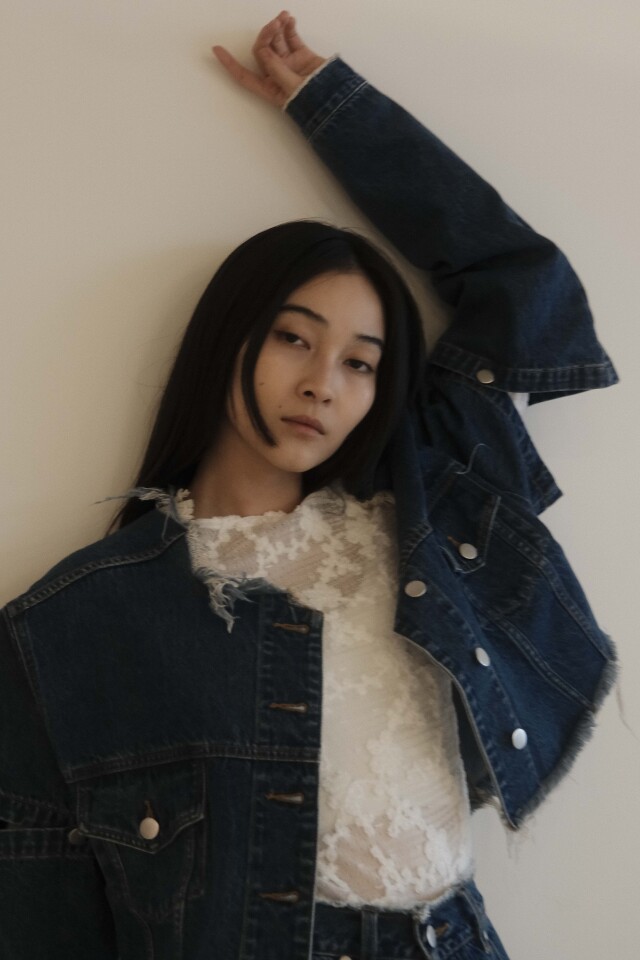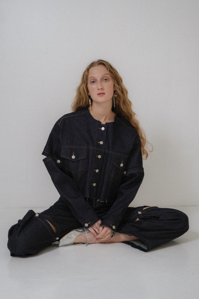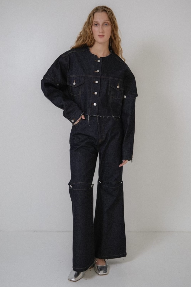 slit denim wide pants(25S-DR-PT02)とセットアップでモードに着こなすのもオススメ