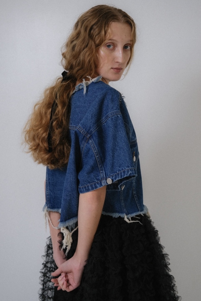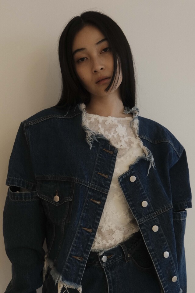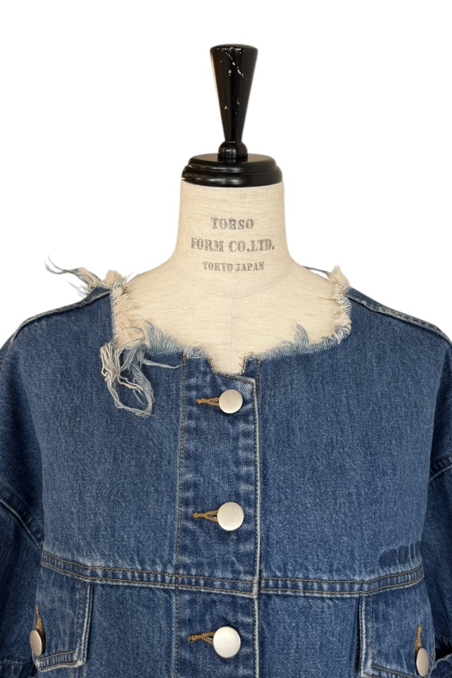 襟元、裾部分は切りっぱなしでオシャレに
