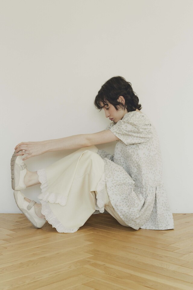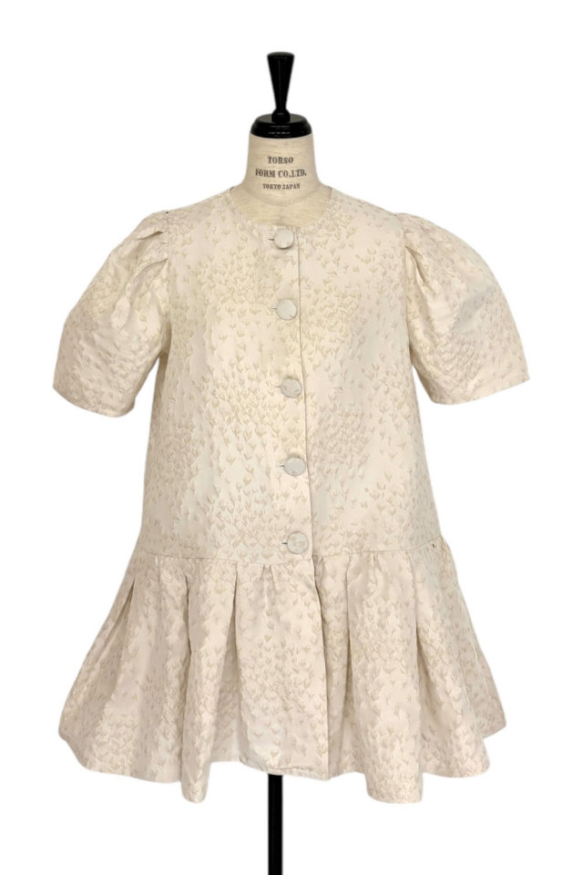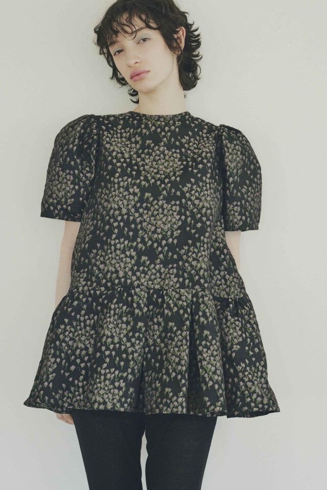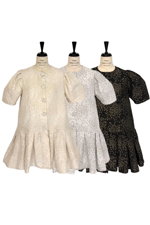 ゆったりと広がるAラインシルエットに、ボリュームのあるパフスリーブ。