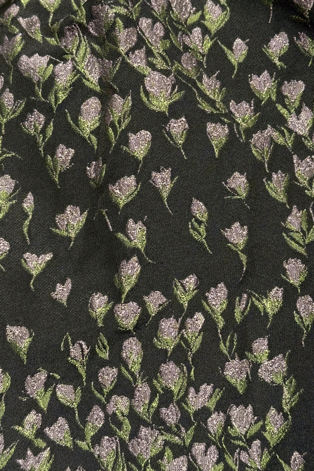クラシックな小花柄をあしらい、シックで上品な印象に。