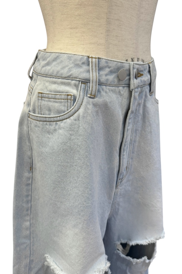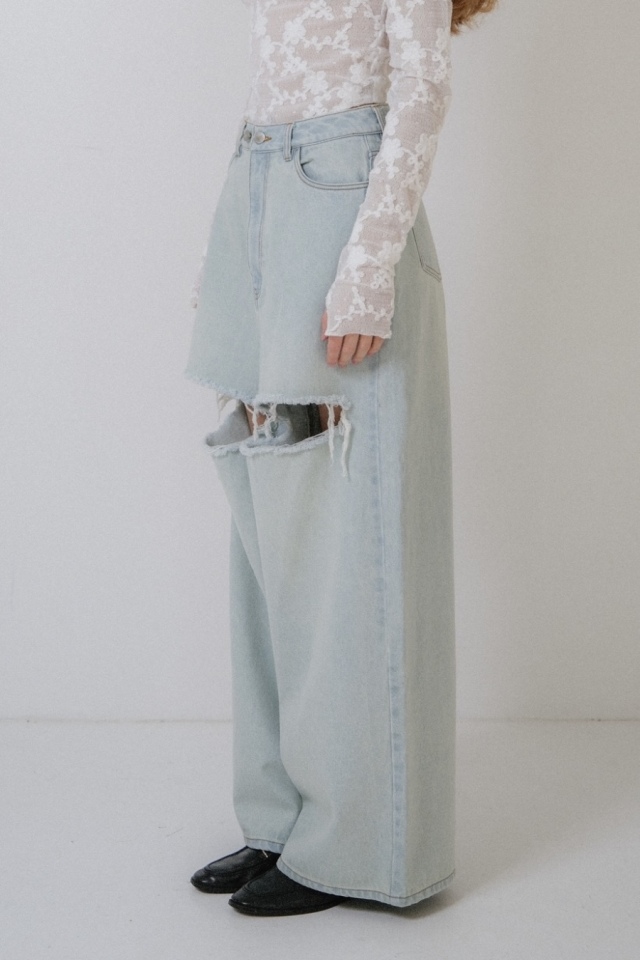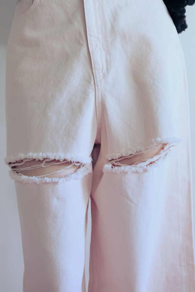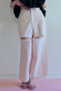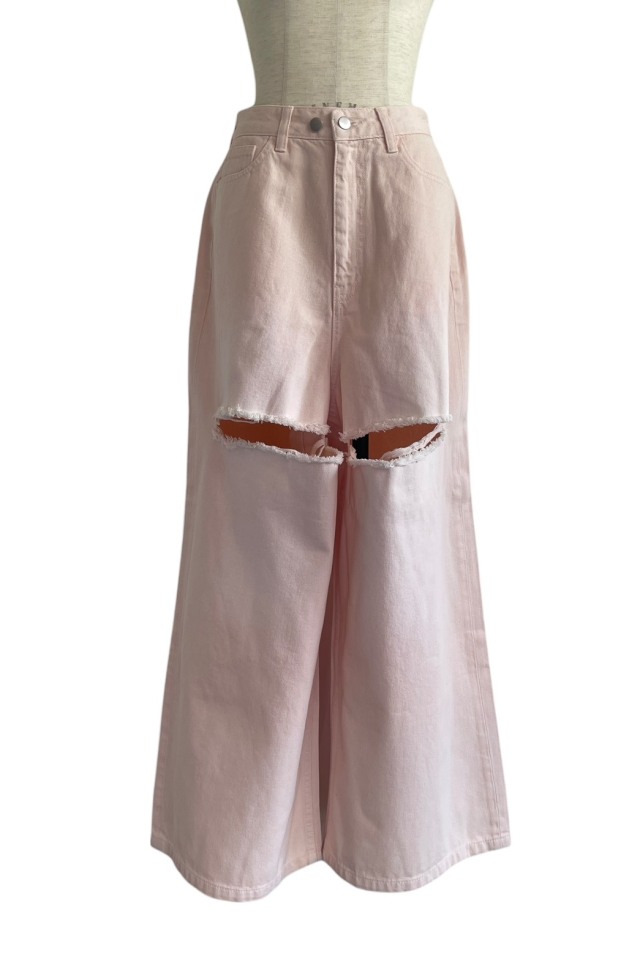 大胆なダメージ加工を施したスーパーワイドシルエットの人気ボーイズデニムが、新色pinkを加えて待望の再入荷。