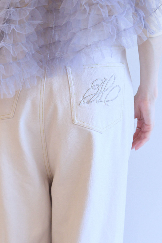 フロントにはボタンを2つ配し、ウエストは2段階で調整が可能なため、フィット感をお好みに合わせてお選びいただけます。