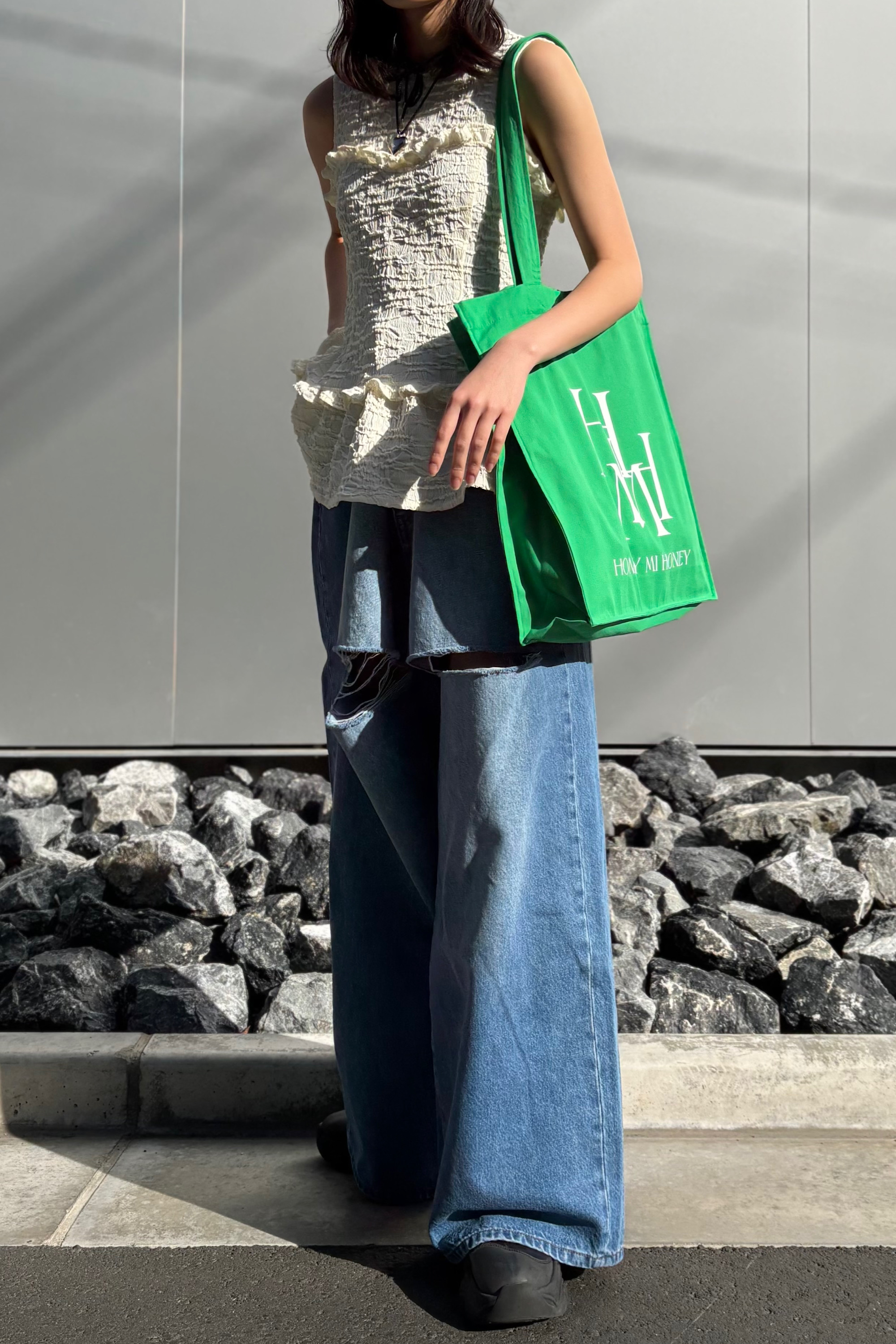 crinkle frill tight skirt(25S-DR-SK01)とセットアップでの着用でオケージョンシーンも華やかに