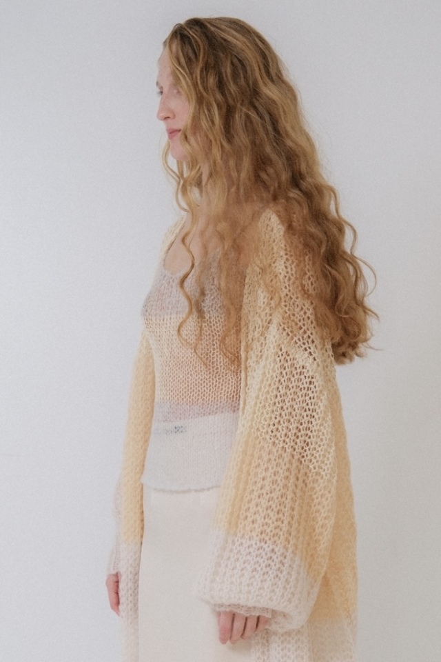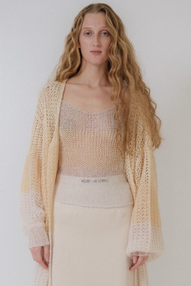 同素材のcrochet border gown cardigan(25S-DR-OT02)や、