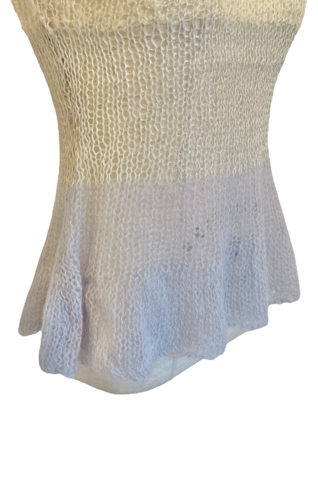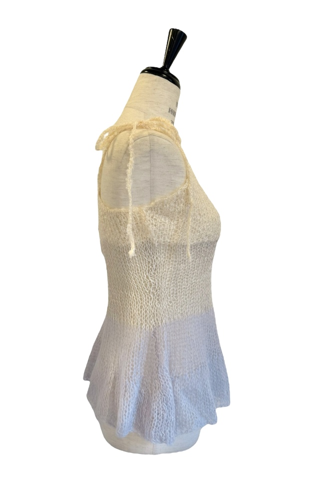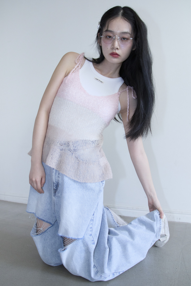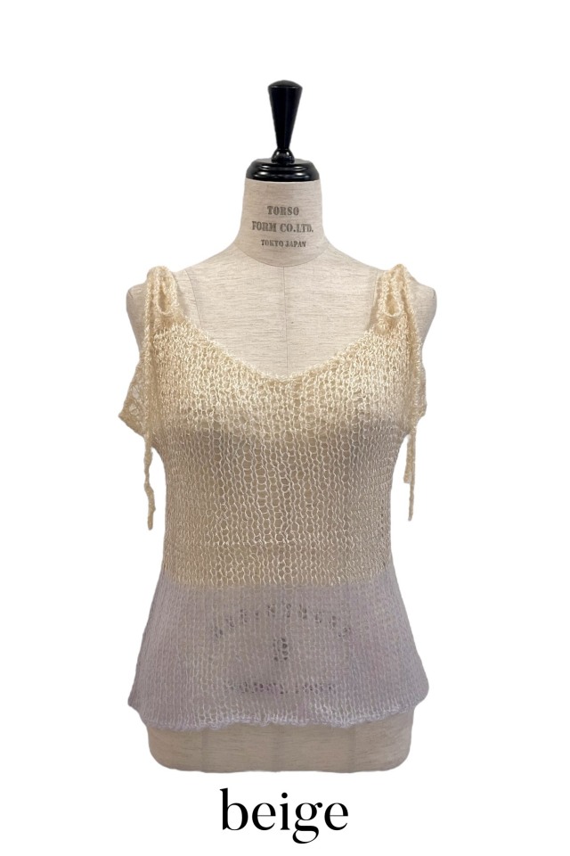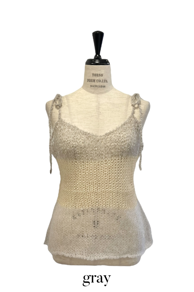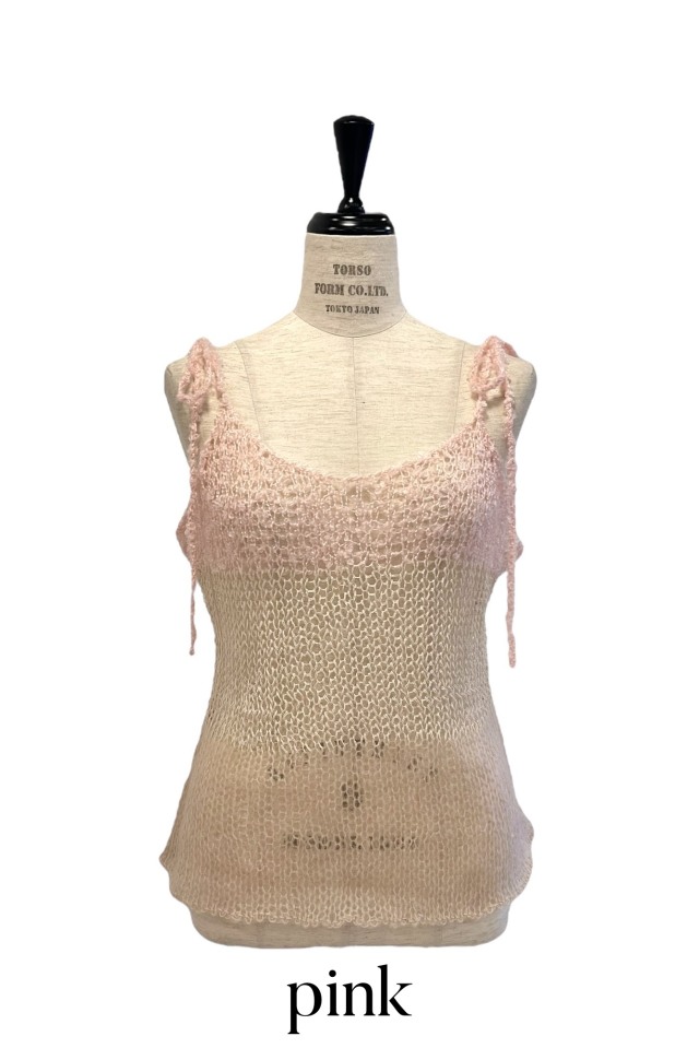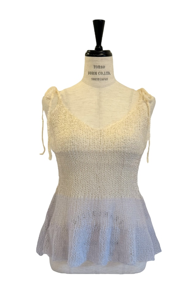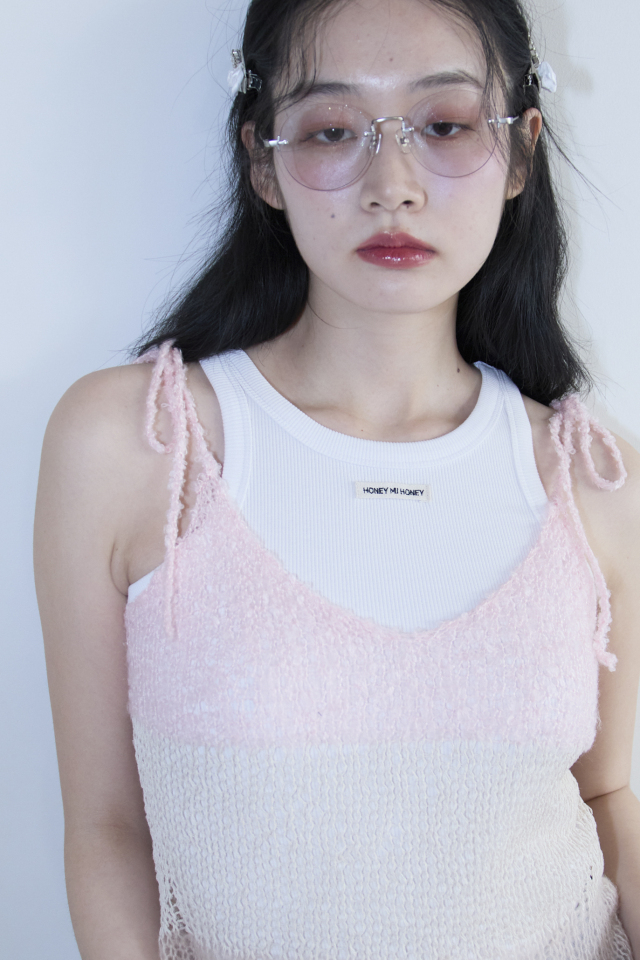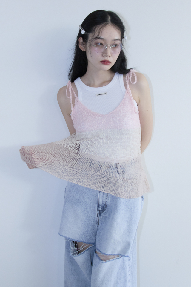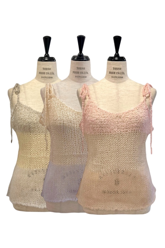 涼しげな鍵あみでカラー合わせがオシャレなボーダーデザインのキャミソール