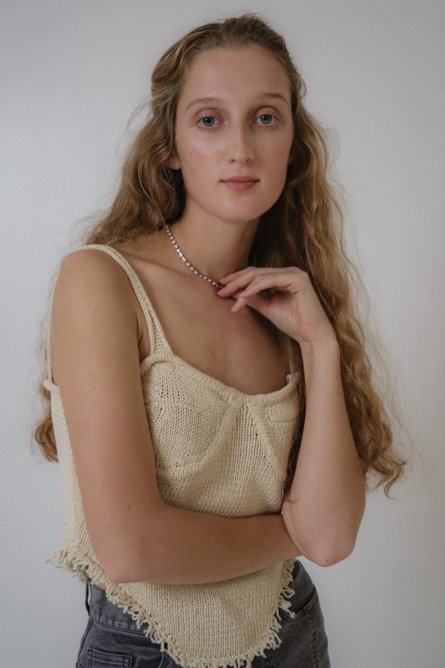 表情をつけるコルセットデザインのキャミソール