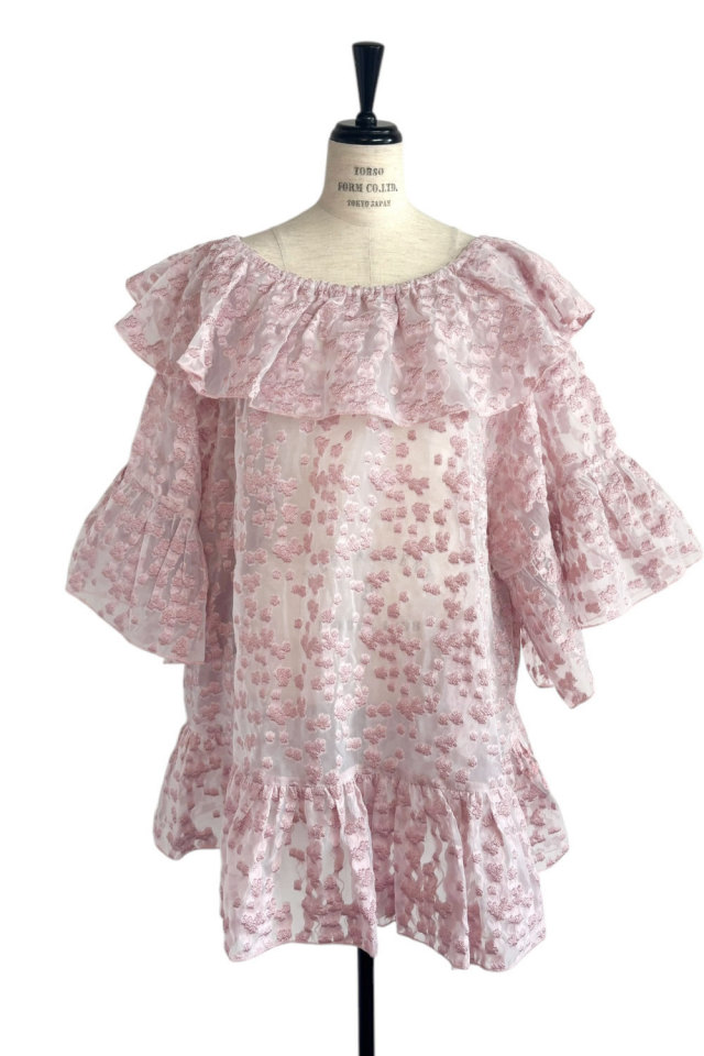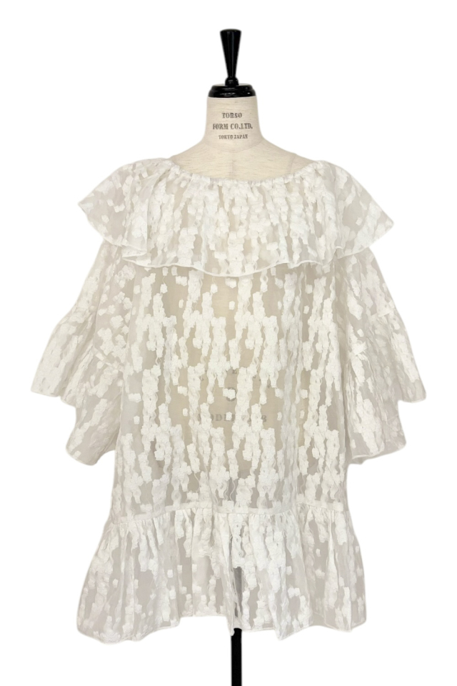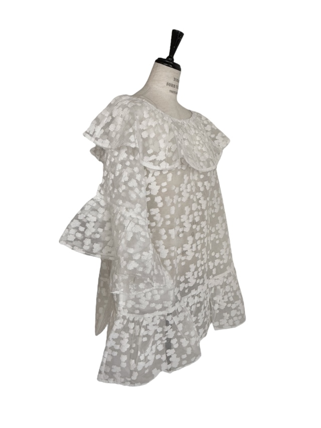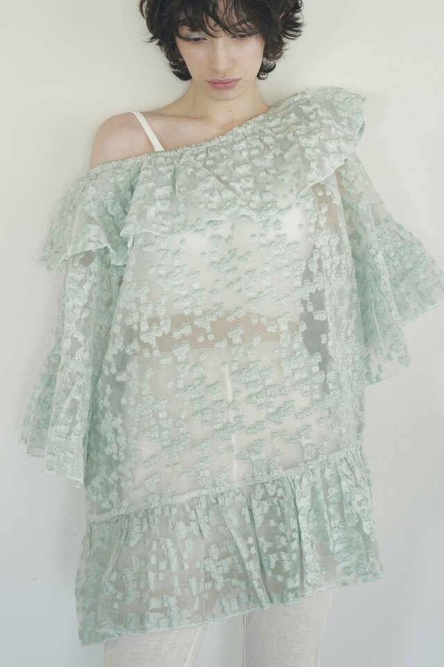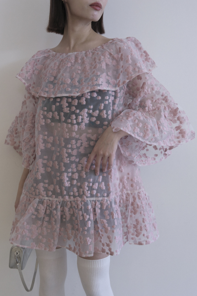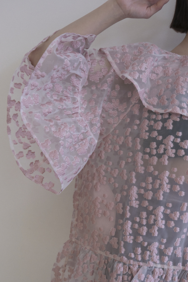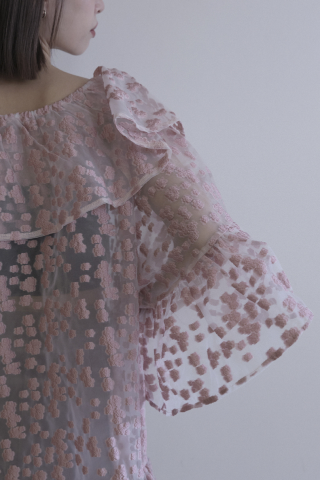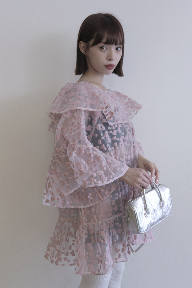 軽やかなシアー素材に立体的なフラワー模様が華やかさをプラス。