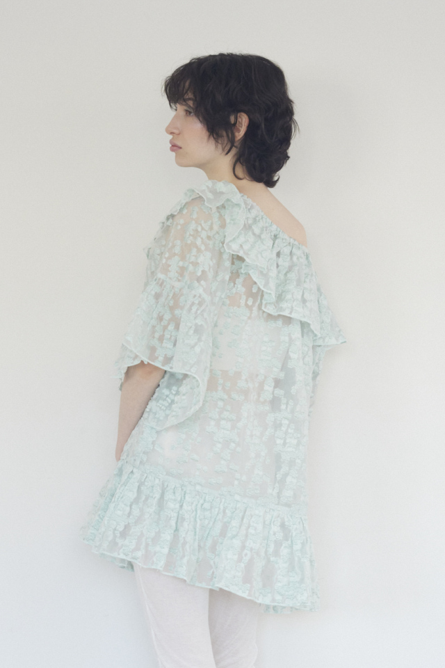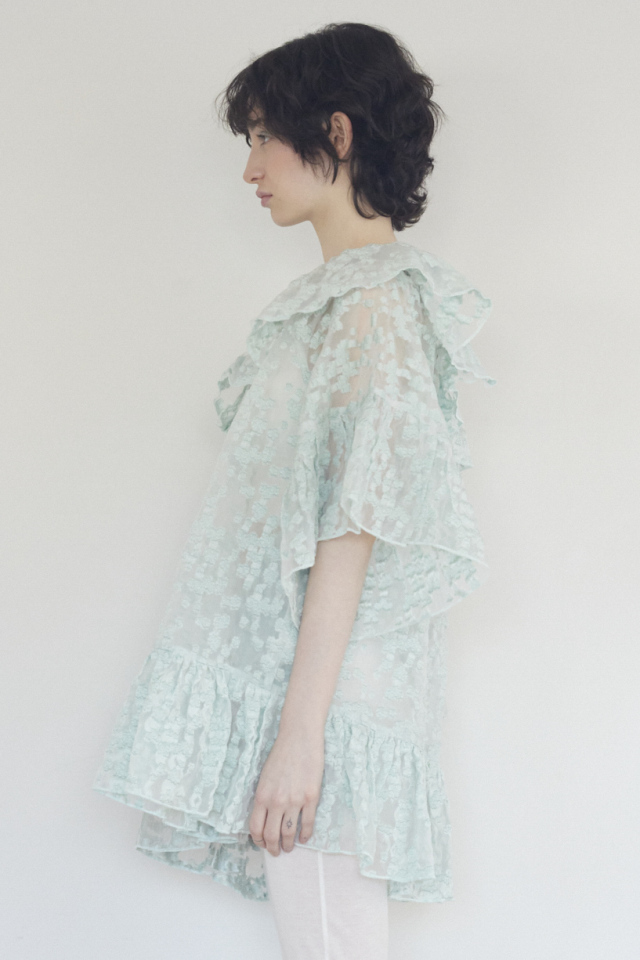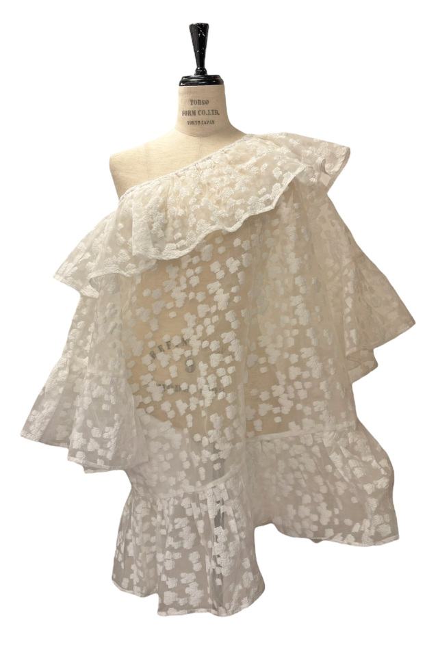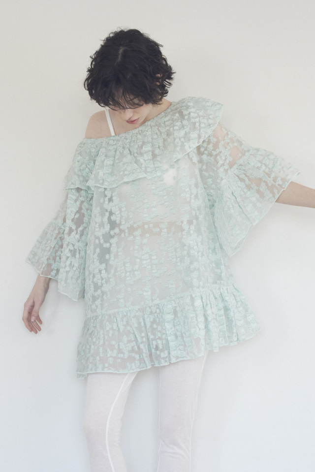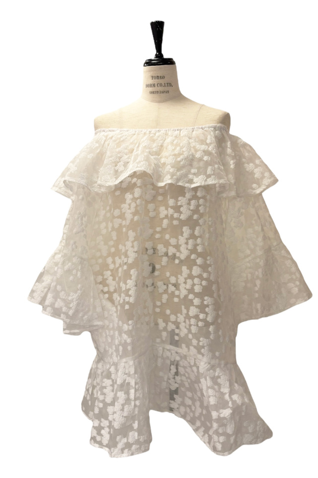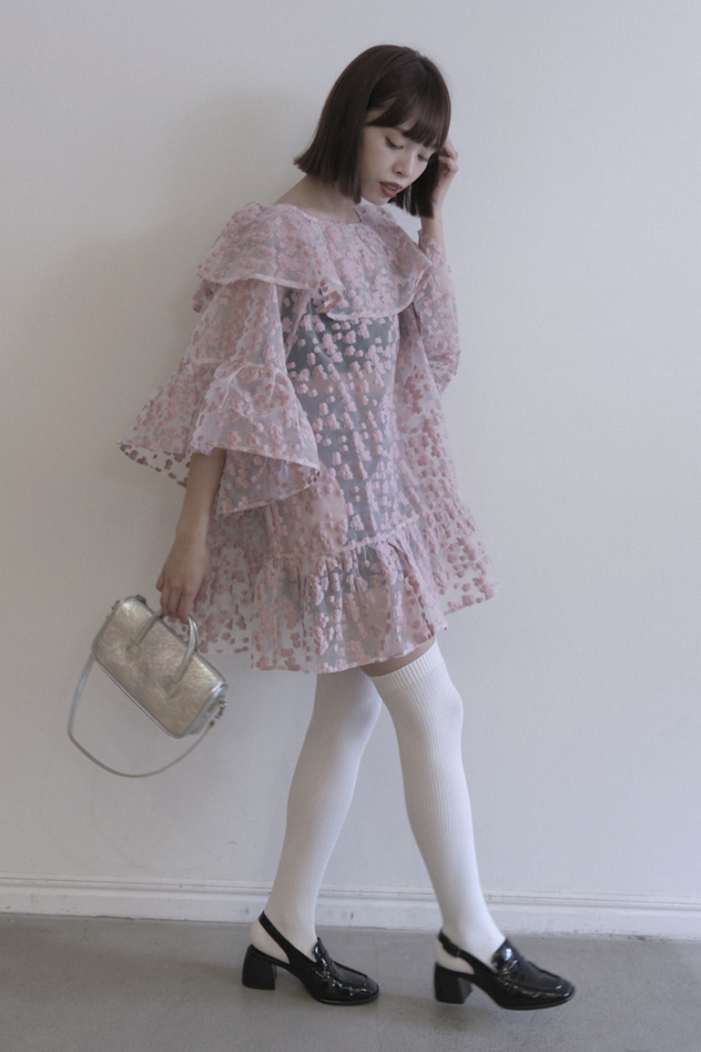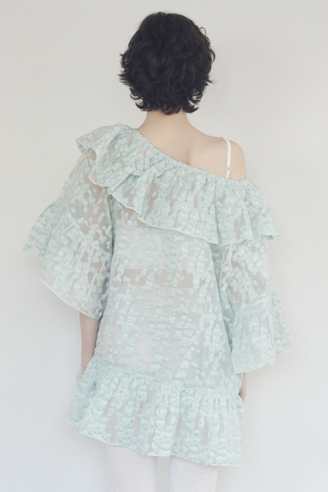 軽やかなシアー素材に立体的なフラワー模様が華やかさをプラス。
