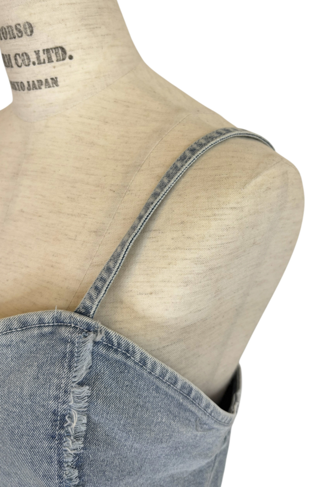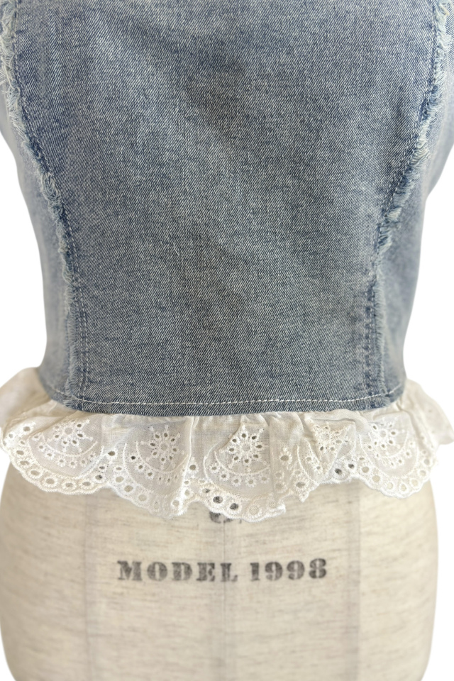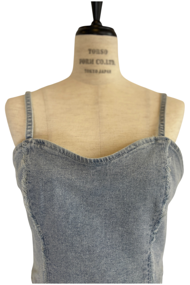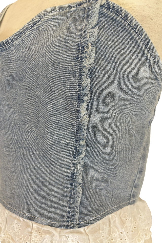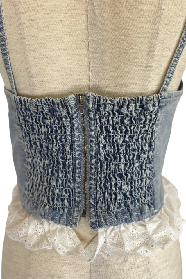 遊び心が光るガーリーデザインのデニムビスチェ。