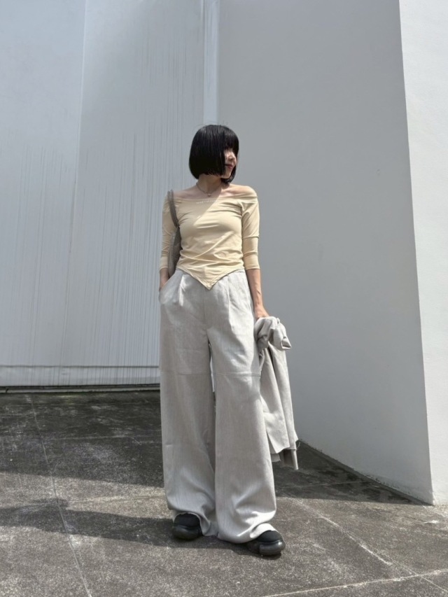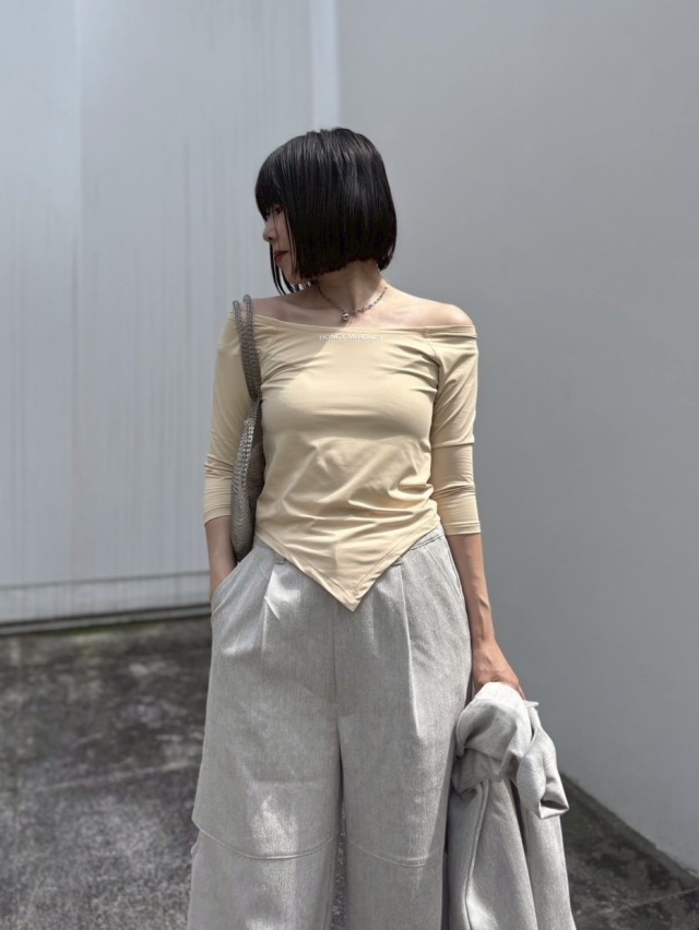 肩を落としてオフショルダーで着ていただくのもおすすめ。
