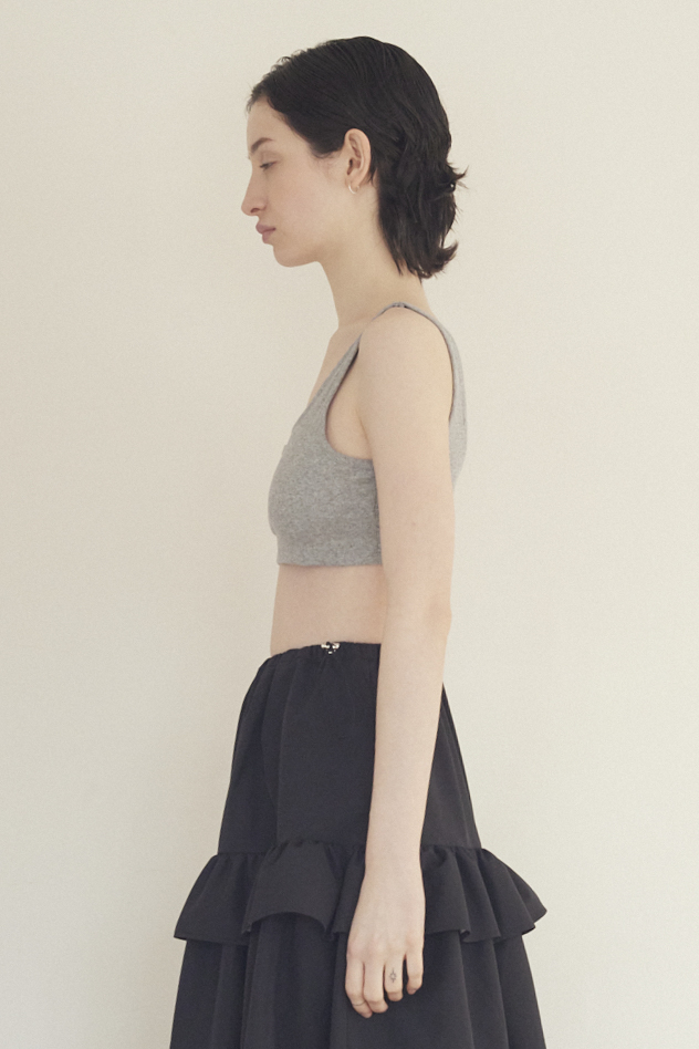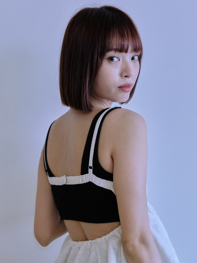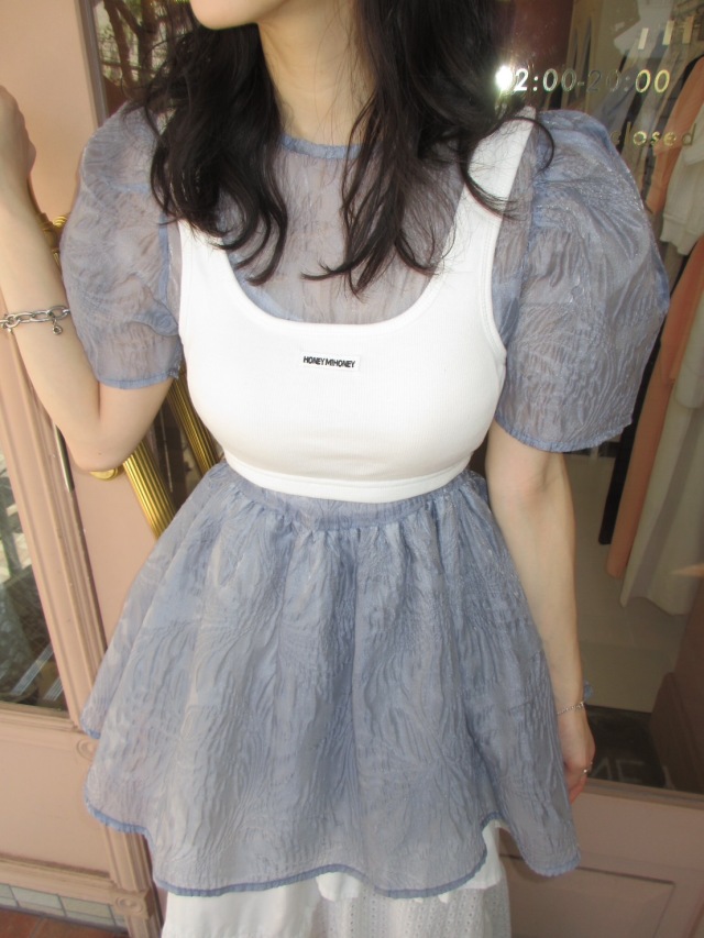 ハイウエストボトムやシアーアイテムとのレイヤードコーデにもぴったり。