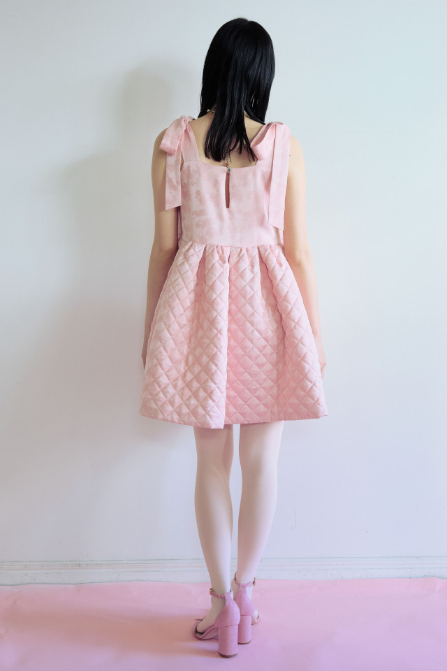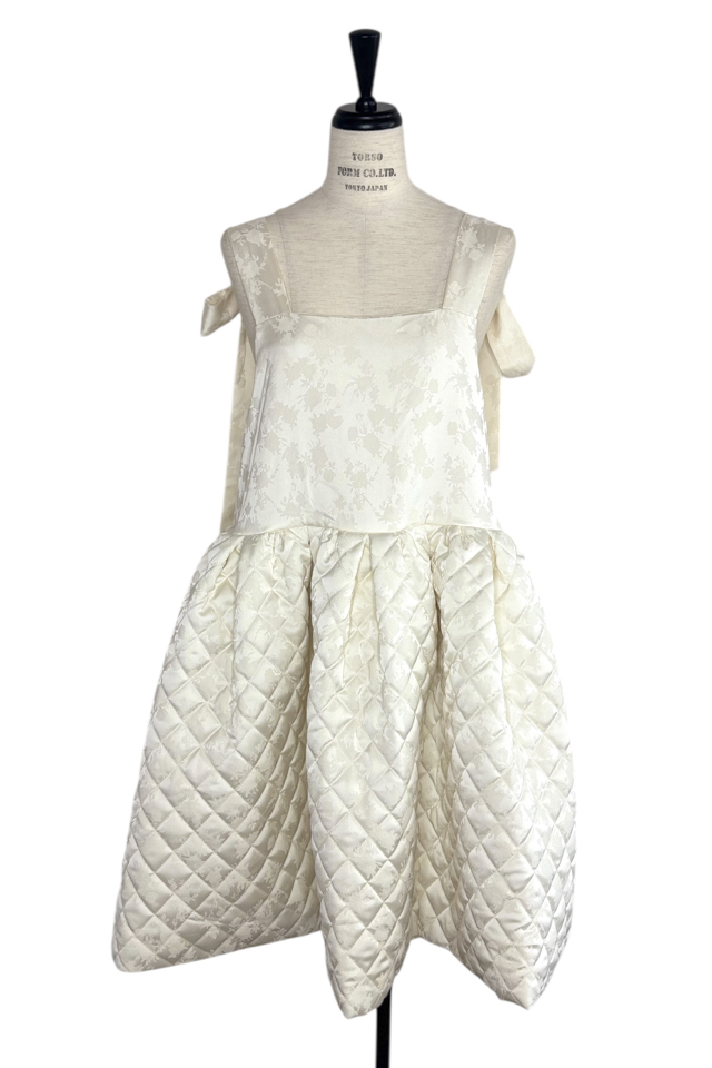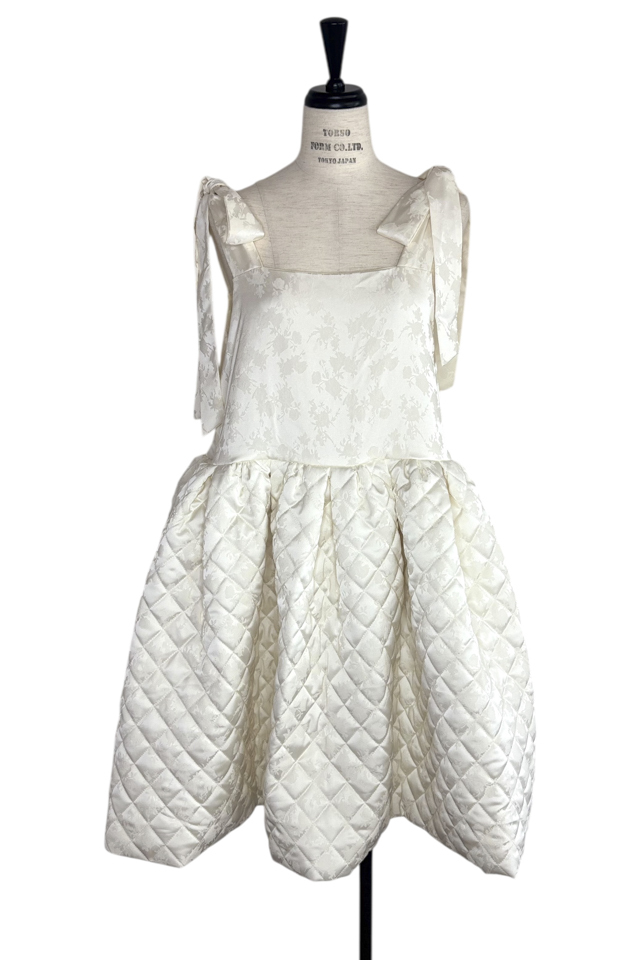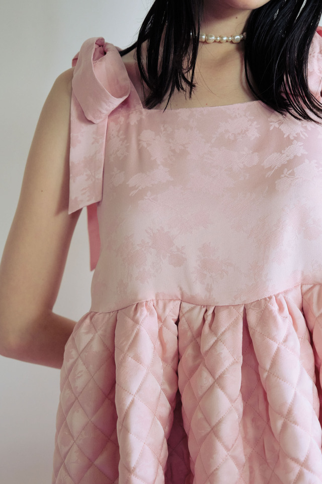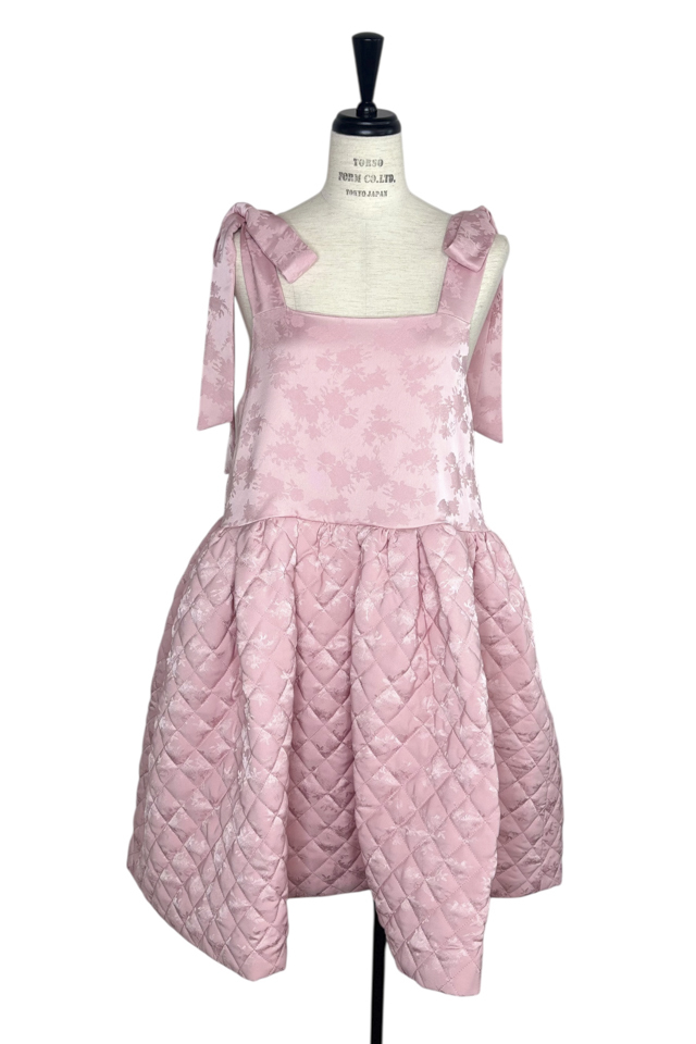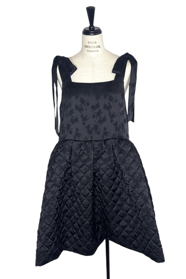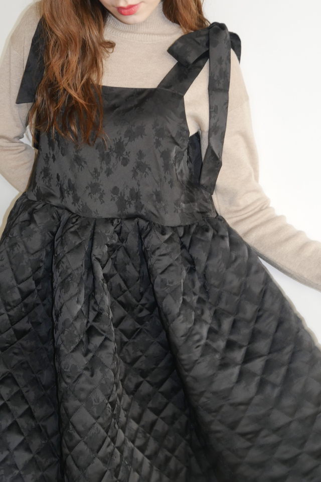 ・立体的なローズ柄を施した光沢サテン×キルティングの切替デザイン