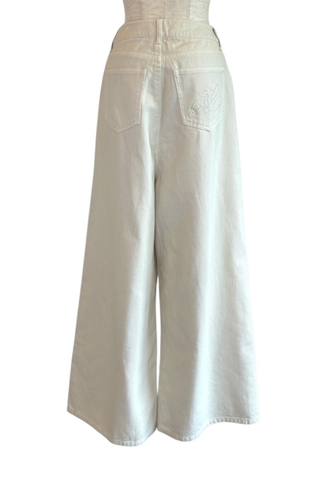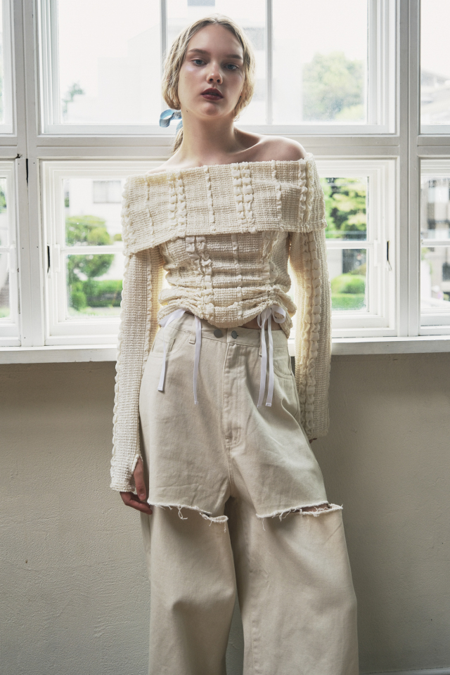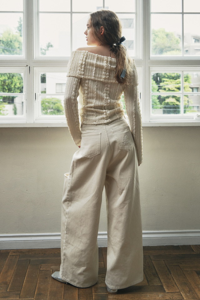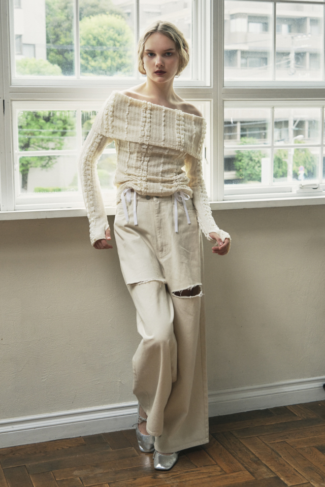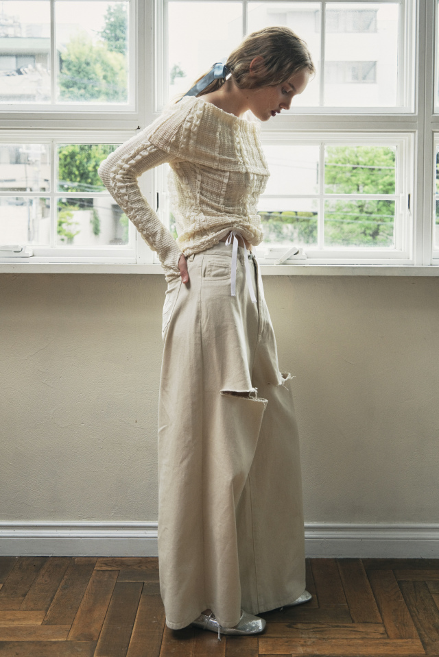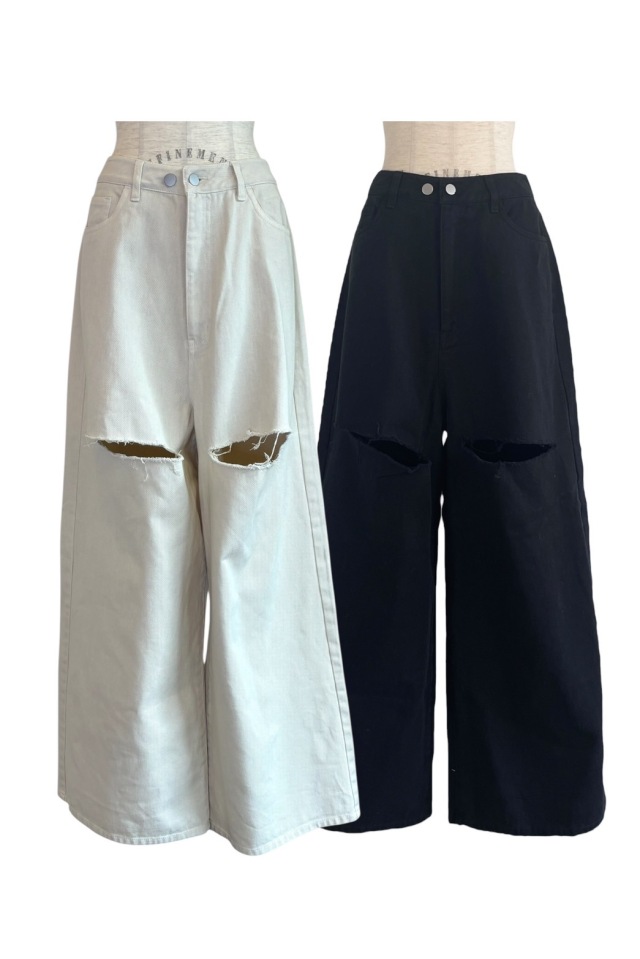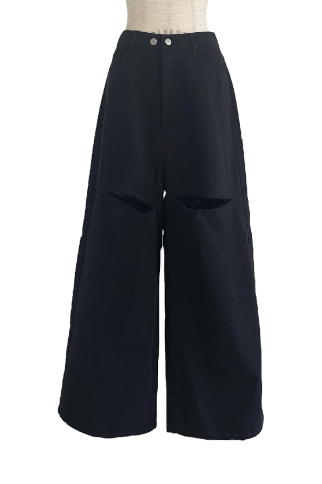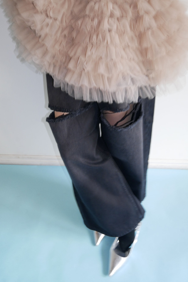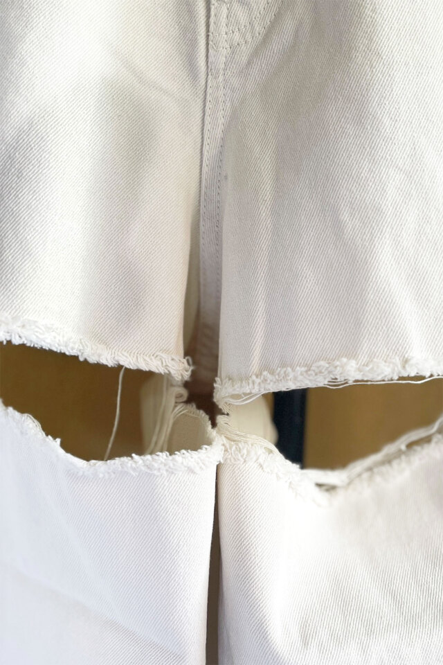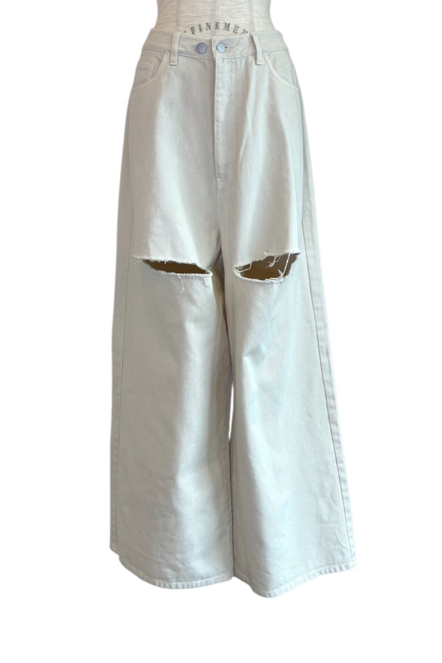 大胆なダメージ加工を施したスーパーワイドシルエットが目を惹く、人気のボーイズデニムに新色が登場