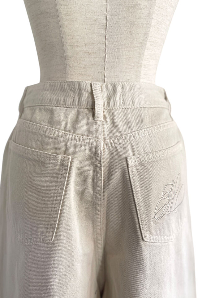 程よい厚みのあるデニム素材で、シーズンを問わず取り入れやすい一本です。