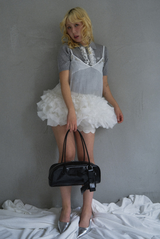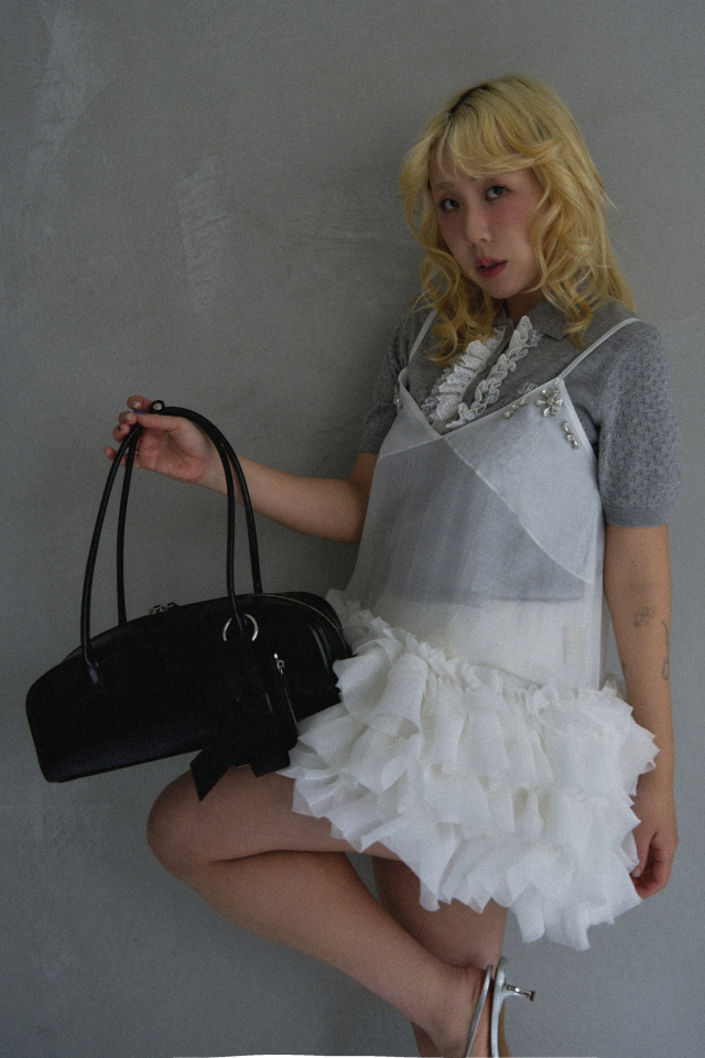 ・minimal boston bag(26S1-CS-BG01)にセットすることで統一感のある大人ガーリーなスタイリングに