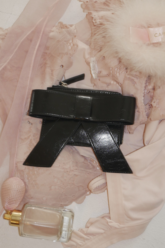 HONEY MI HONEYらしい大ぶりリボンがアクセントになった、上品なミニパスケース。