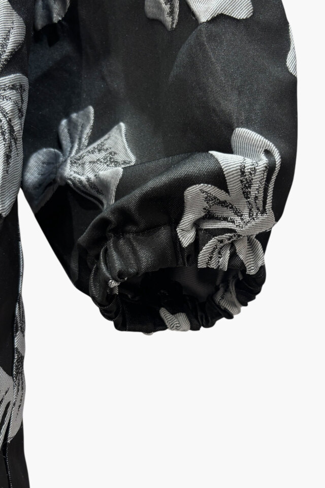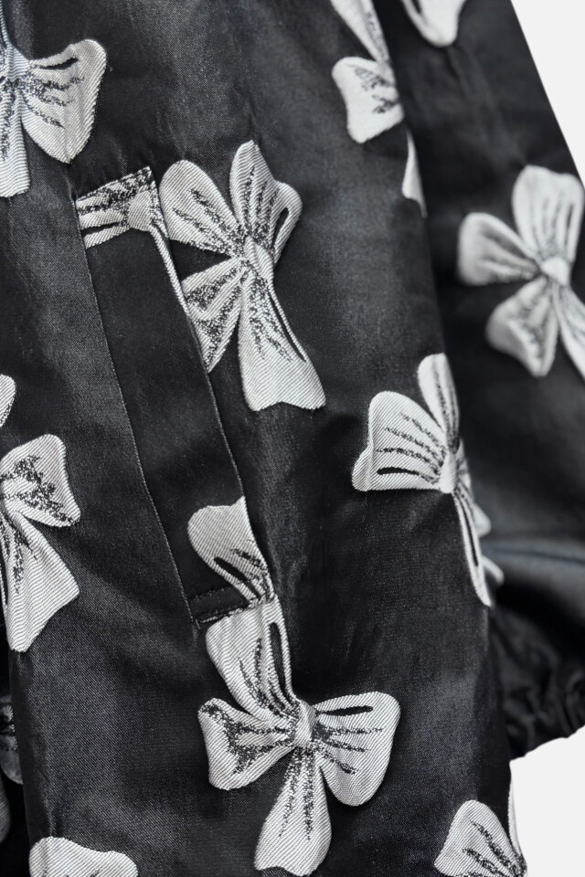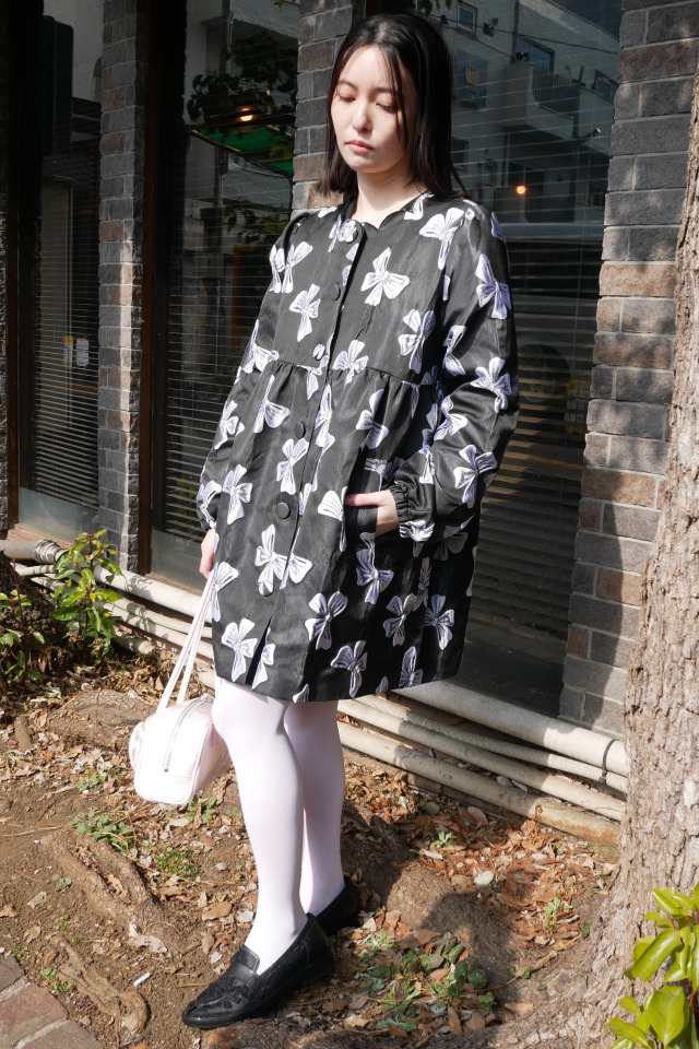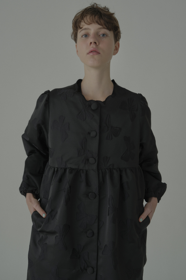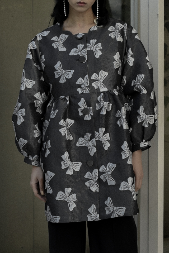 甘さを抑えたリボン柄とクラシカルなディテールが、大人の可愛らしさを演出。