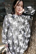 ふんわりと広がるAラインシルエットが、女性らしく柔らかな印象を引き立てます。