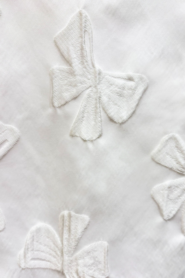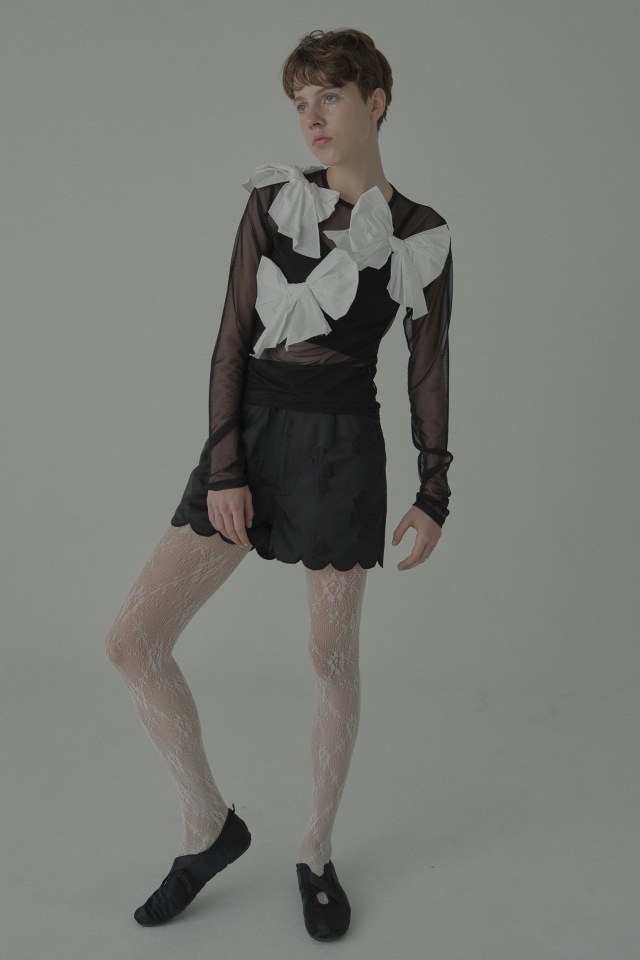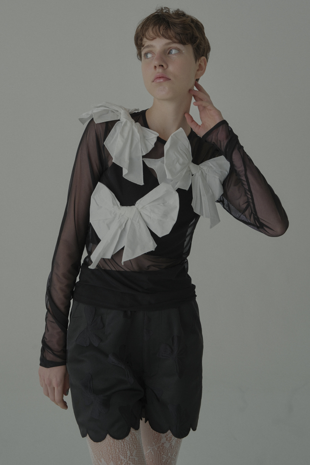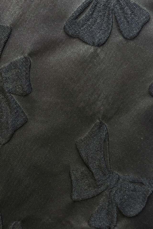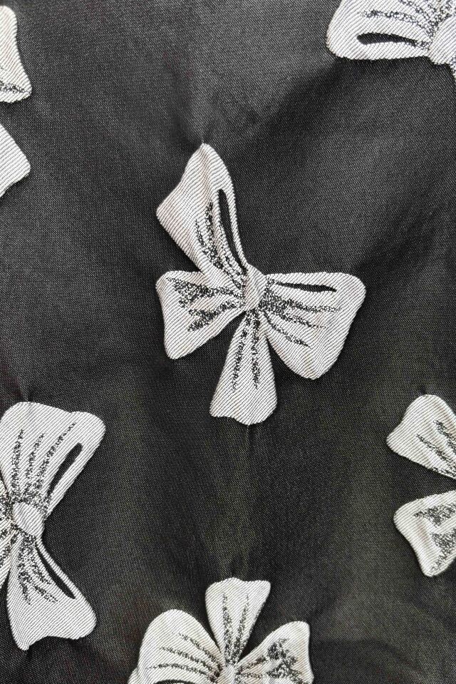 立体的なリボンジャガードが生み出す奥行きのある表情が、スタイリングにさりげない華やぎを添えます。