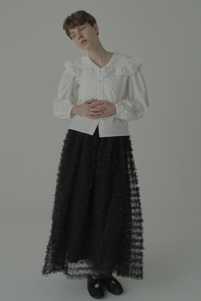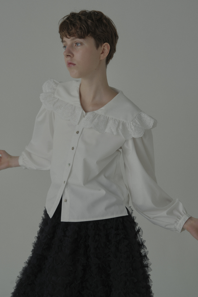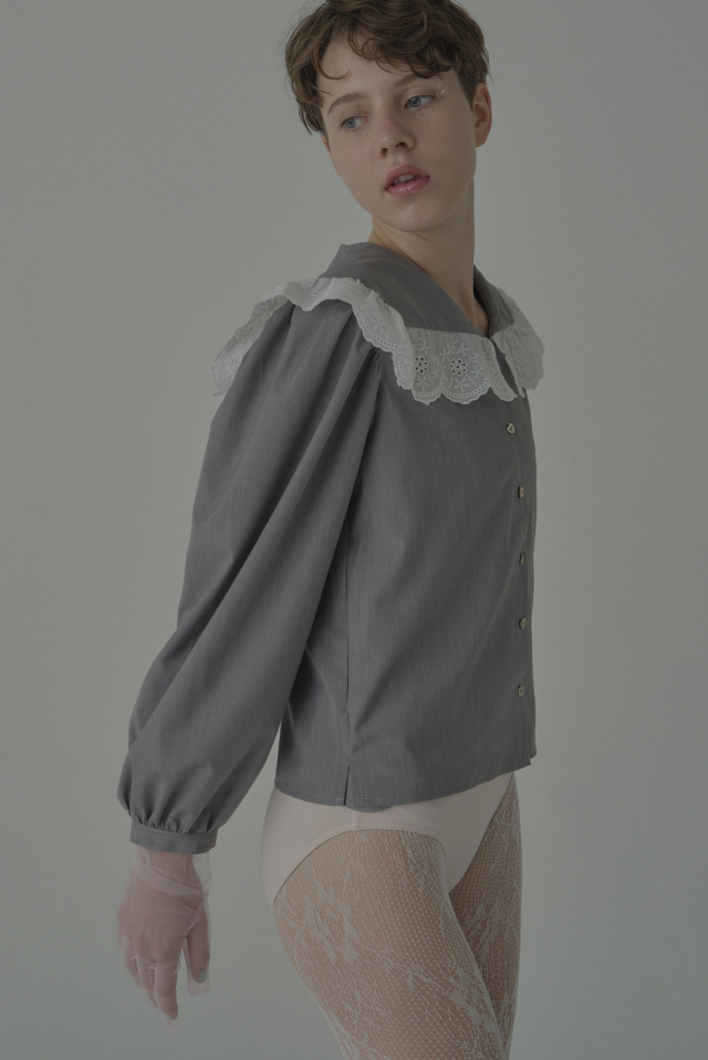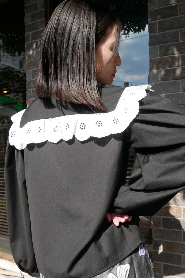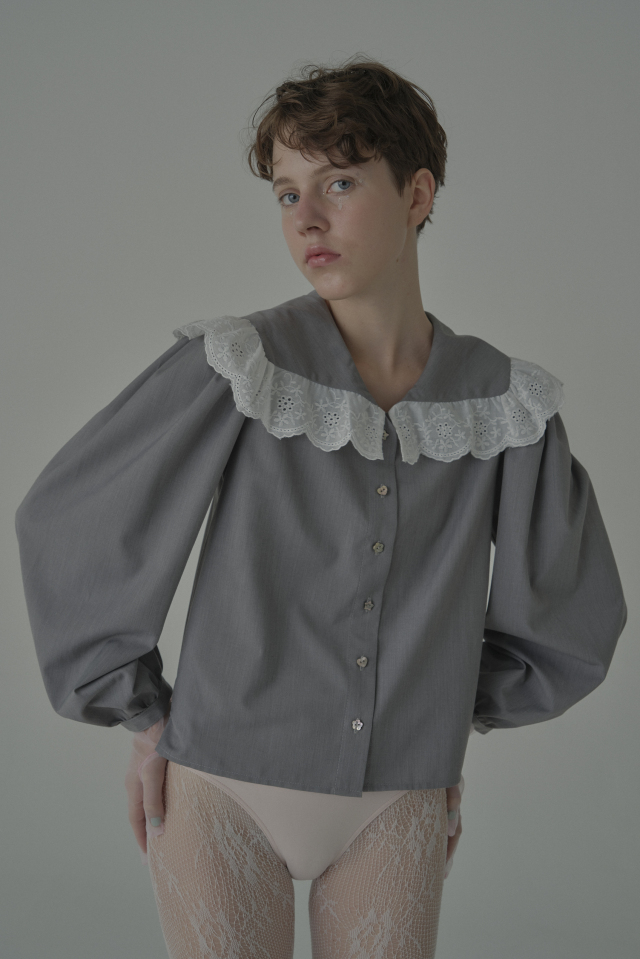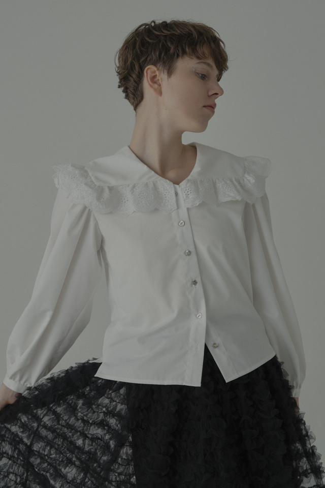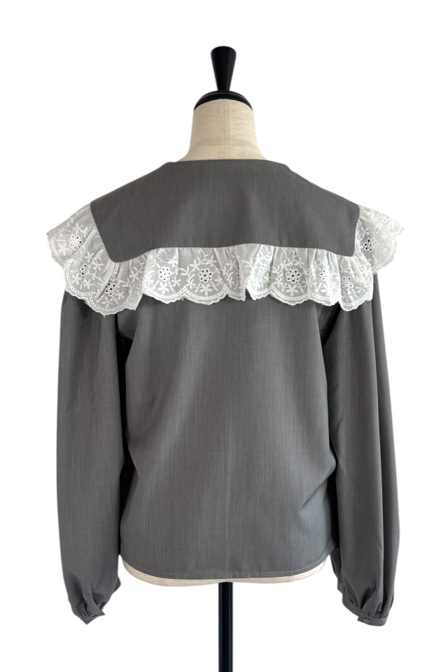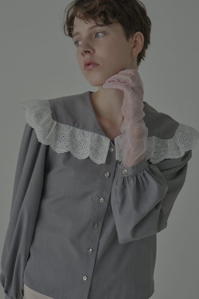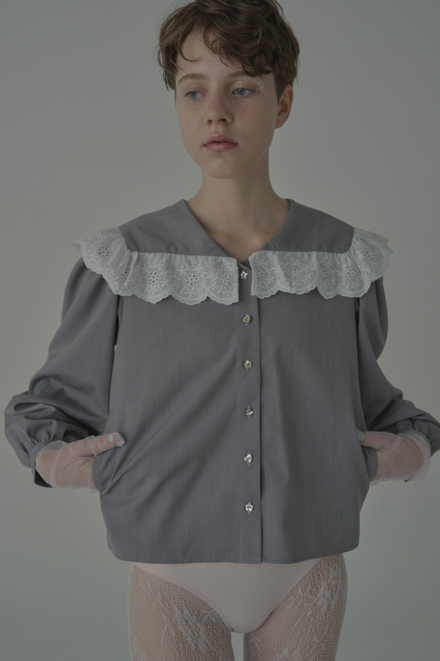 フロントを閉めてブラウスとしても、羽織としても着用できるデザインで、大きめのヨークとゆとりのある袖が抜け感のある可憐なシルエットを演出。