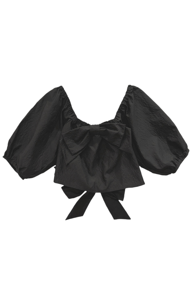 パフスリーブとしても、オフショルダーとしても楽しめ、スタイリングに合わせて表情を変えられます。