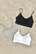 華奢なストラップが肩周りをスッキリ見せる、シンプルなリブブラトップ。