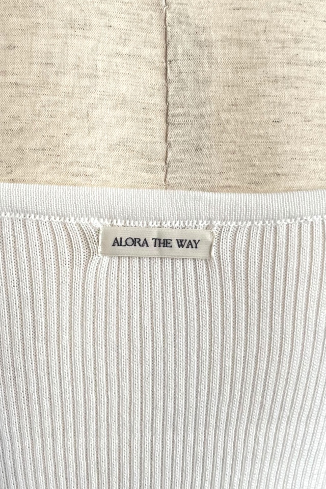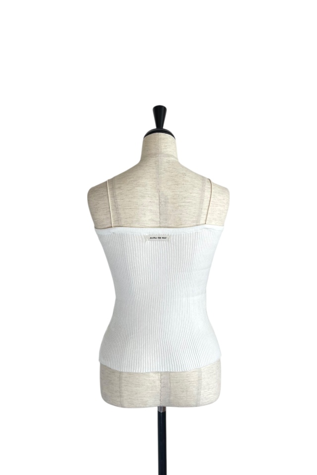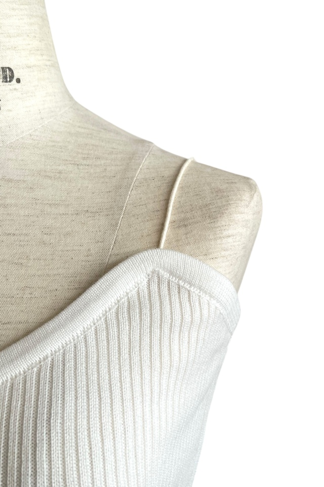 柔らかなリブニットがボディに優しくフィットし、女性らしいシルエットを自然に演出してくれる一枚。