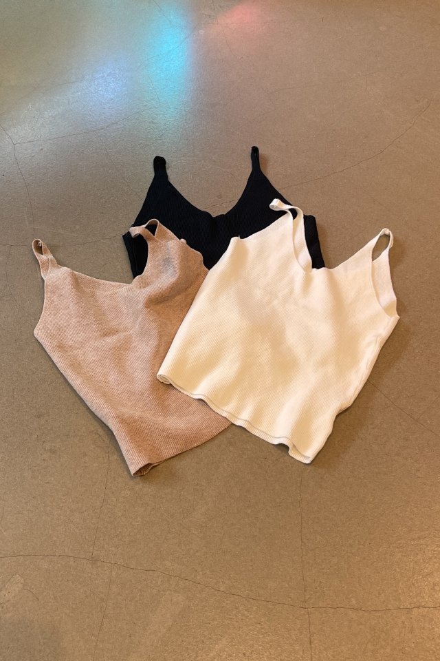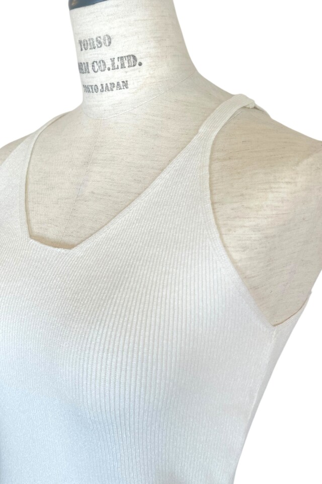 繊細なリブ編みが魅力の、ニットタンクトップ。
