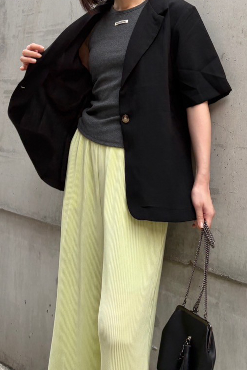 ショート丈とコンパクトなシルエットがバランスよく、
