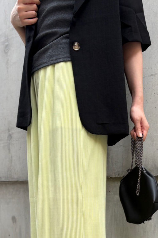 ワンピースやハイウエストボトムとも好相性。