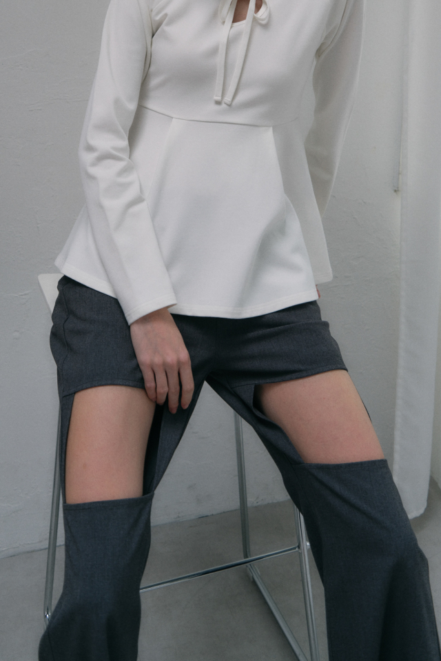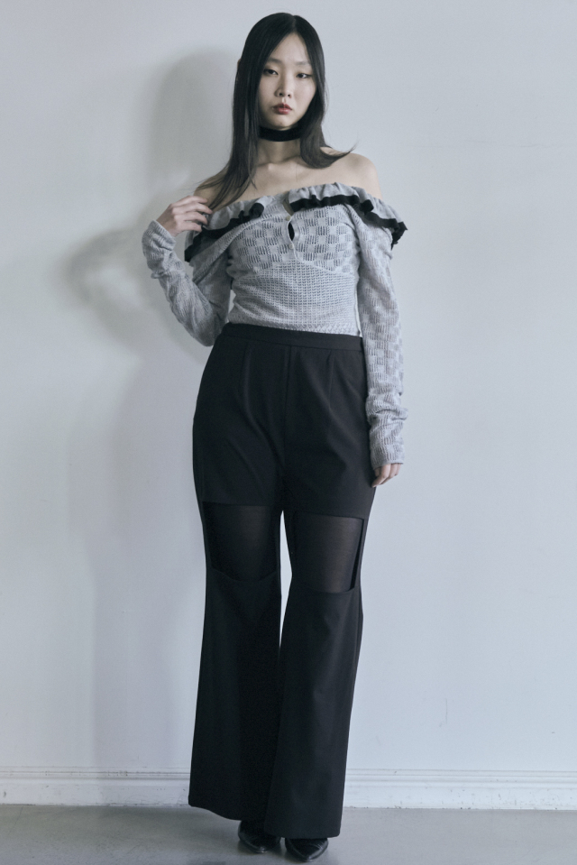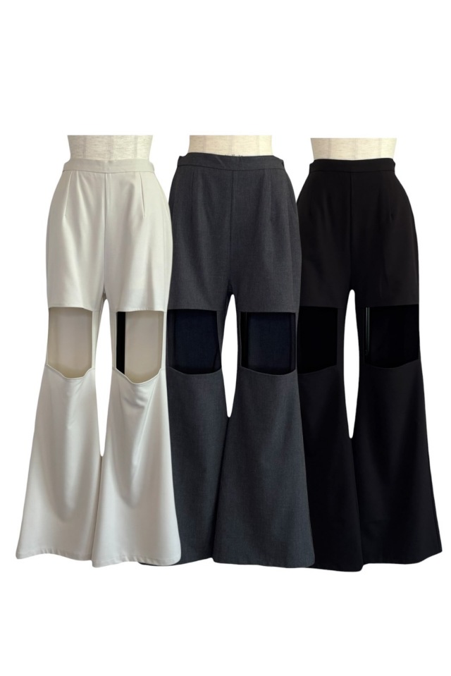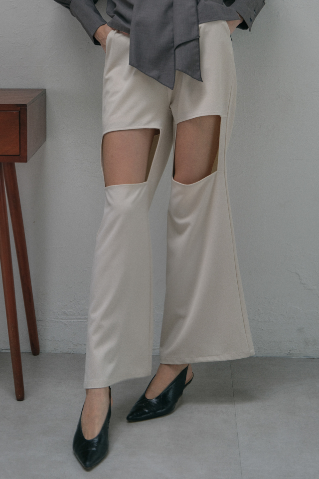 復刻の要望が多かった、スクエアカットがアクセントの美脚フレアパンツ。